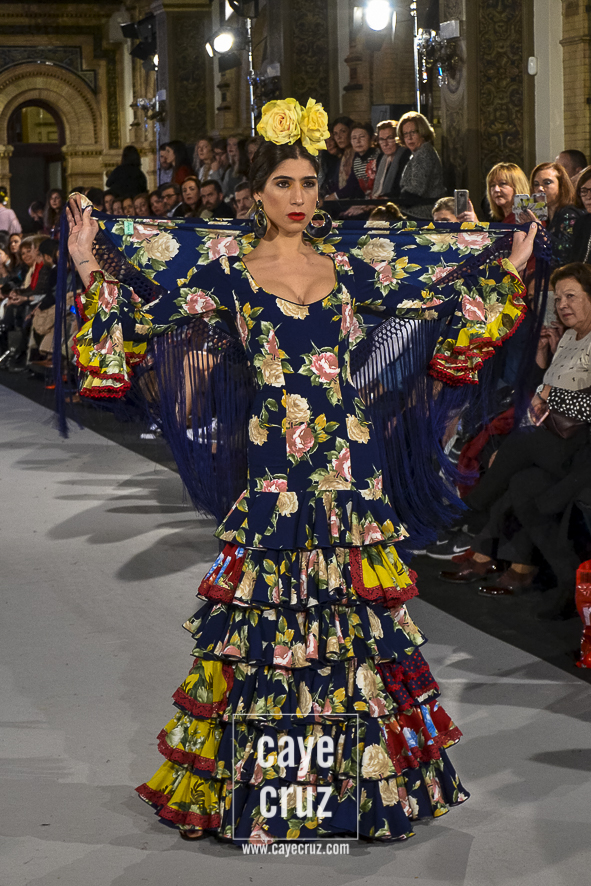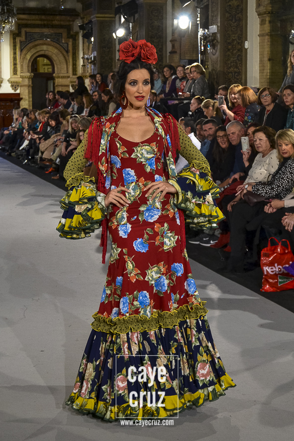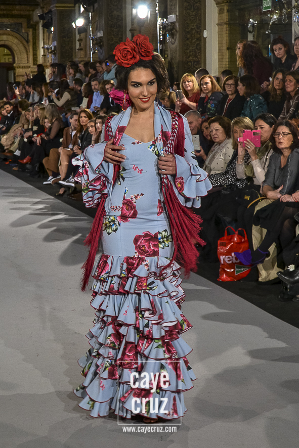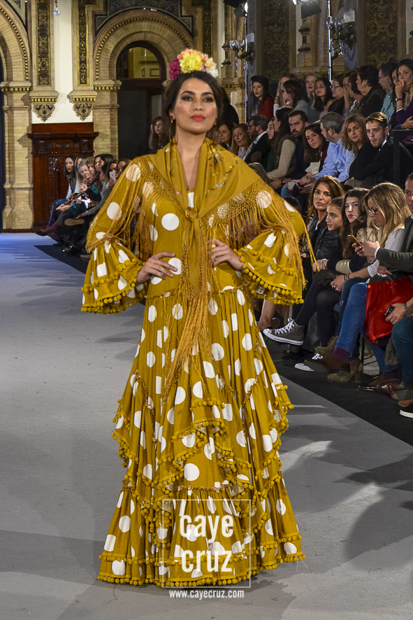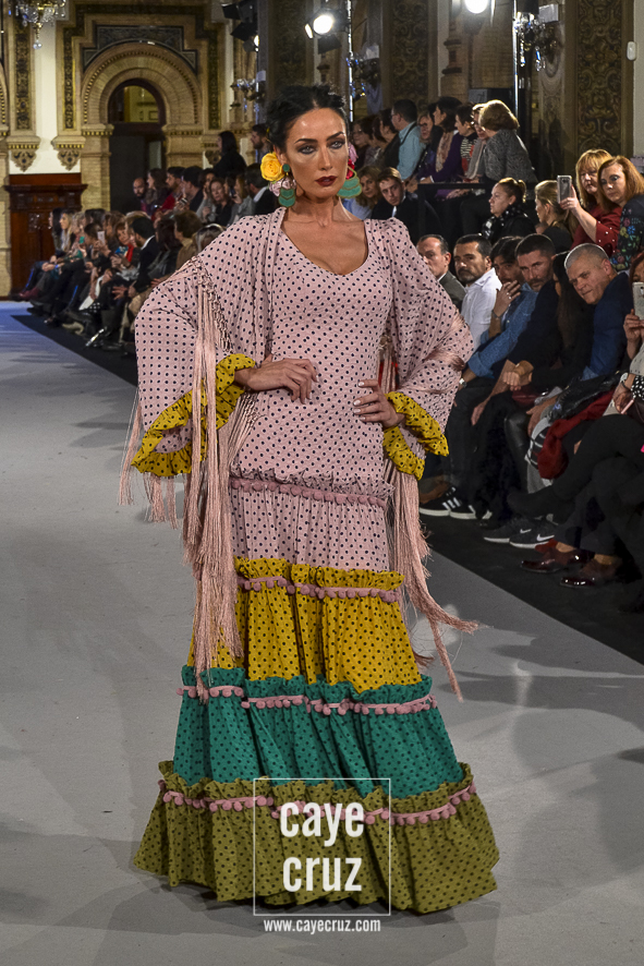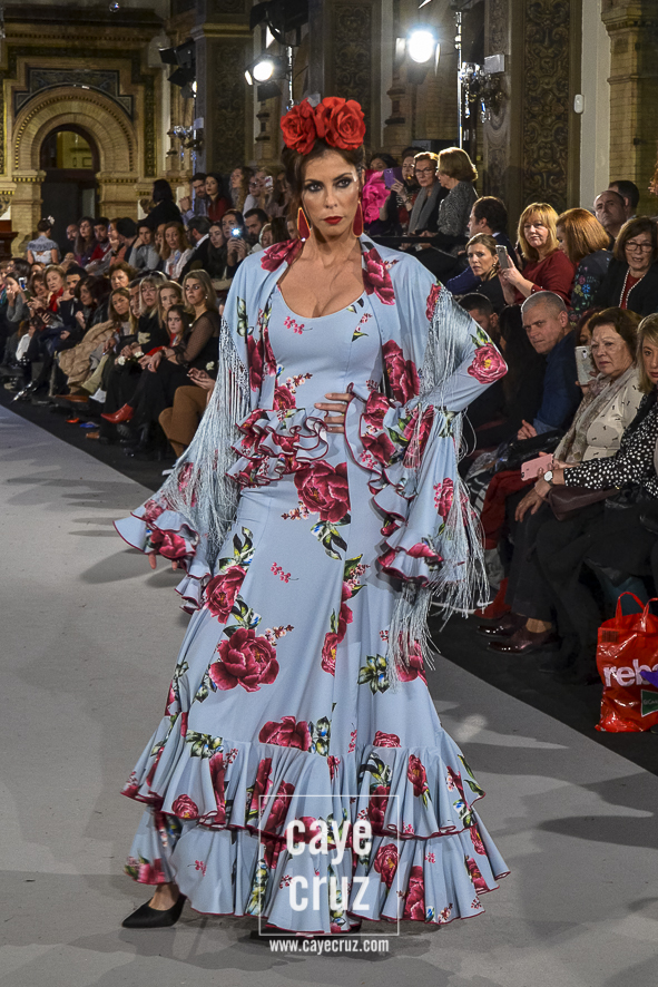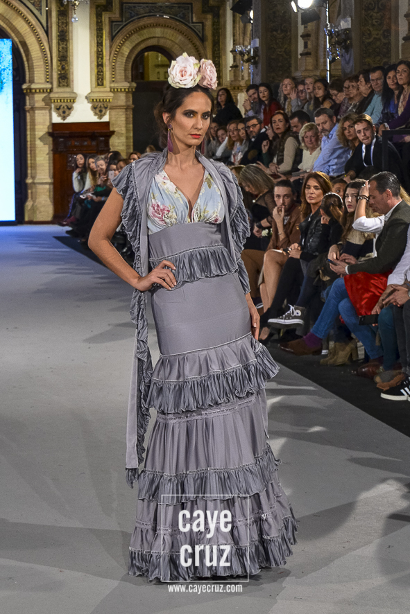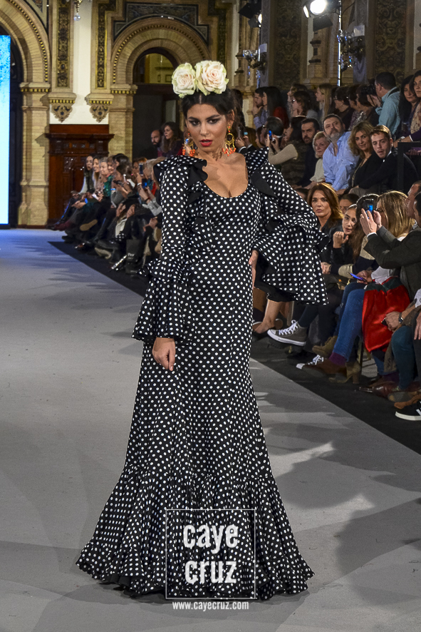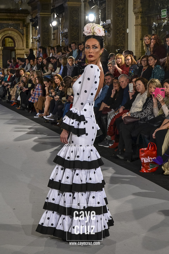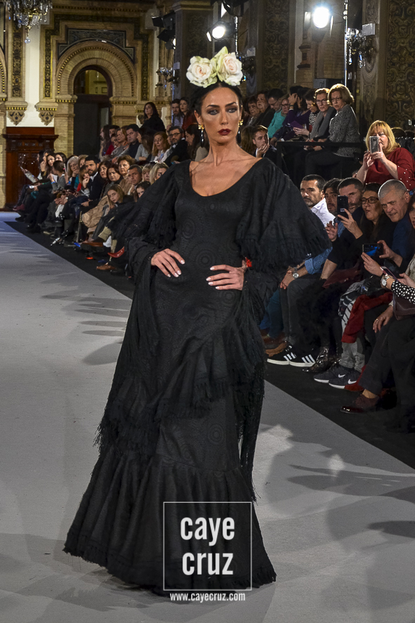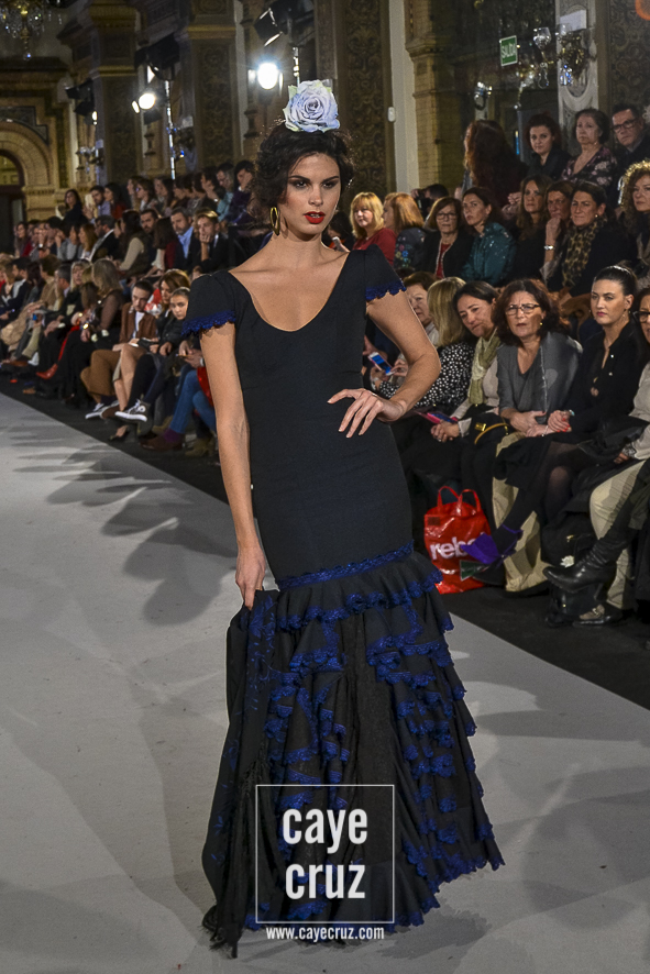 Para 2018 Pepa Garrido nos ofrece las diferentes versiones de su propio universo muy matizadas y, sobre todo, con una paleta de colores muy bien elegida. No abandona el hippyechic que casi siempre envuelve a su flamenca y lo adorna con una mezcla de tonalidades algo circular, pues partiendo del negro se pasa a diferentes combinaciones que desembocan, de nuevo, en el negro y blanco que tan bien funciona en flamenca. Lo hace sin apenas volúmenes pero con un arsenal de volantes bastante generosos, con talles más altos, tejidos con mucha caída y unos colores donde Carmen, directora creativa de la firma, es fiel a su gusto por mezclar tonos fríos de azules o rojos con gamas tostadas de mostaza o verde. Un compendio bien resuelto donde la comodidad de una flamenca que, por momentos busca lo diferente, parece ser la nota dominante.