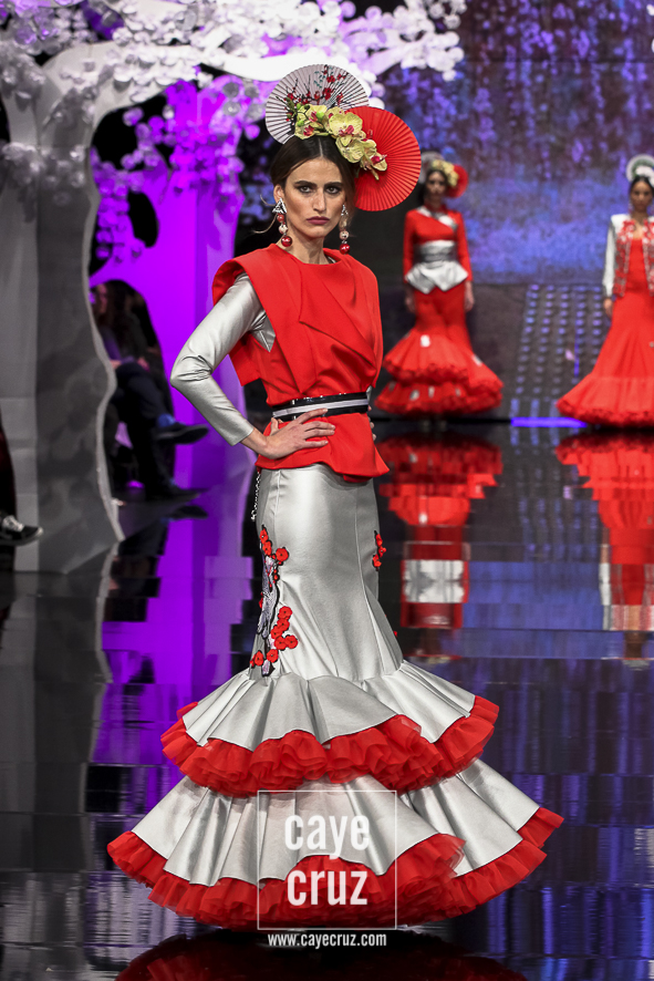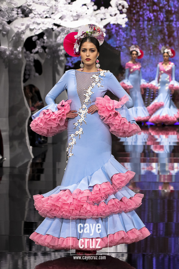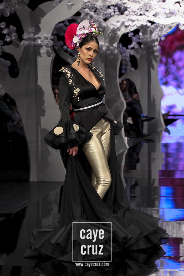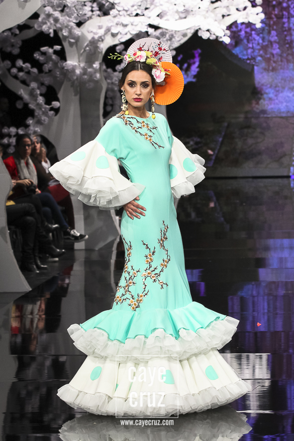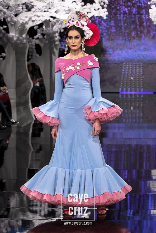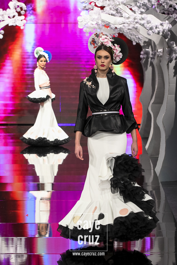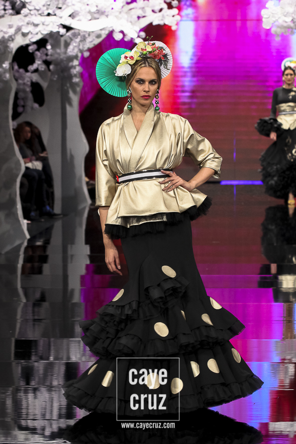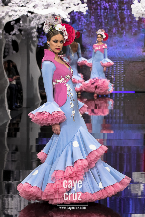 Patricia ha acertado en varios factores. El primero la paleta de colores: si esta es su mejor colección es, entre otros factores, porque ha unido los tonos que mejor le han funcionado en pasarela (pasteles, cálidos o aguamarinas) con aquellos en los que parece sentirse más cómoda (negro, blanco y tonos metalizados). El segundo está en un patronaje de líneas que no se salen del traje de flamenca, de ideas que siguen la tendencia actual, de lunares que salpican los volantes, de flores que recorren los trajes con mucha exquisitez, de gamas cromáticas que saben combinarse y de detalles que introducen de manera leve el vestir japonés. El tercero en recordar que Japón es el ejemplo perfecto de país que sabe unir su pasado con el futuro (hay más de modernidad que de costumbrismo en los trajes). Y, por último, lo más destacado es que la inspiración o leitmotiv de la colección se integra en los diseños como una pieza más, como una prenda que acompaña, pero no condiciona, a unos trajes de flamenca donde quizá la búsqueda de un estilismo elegante haya estado por encima de la fusión cultural.