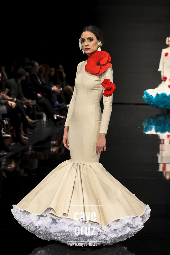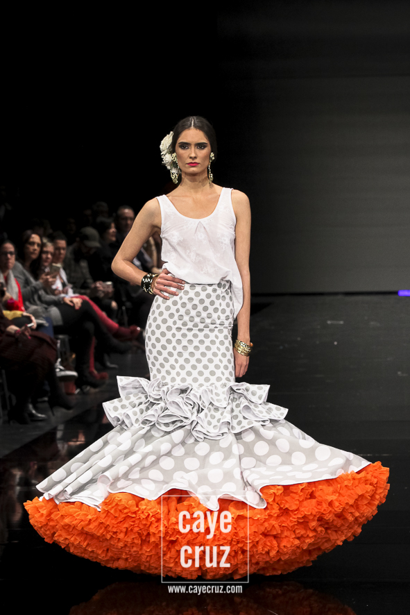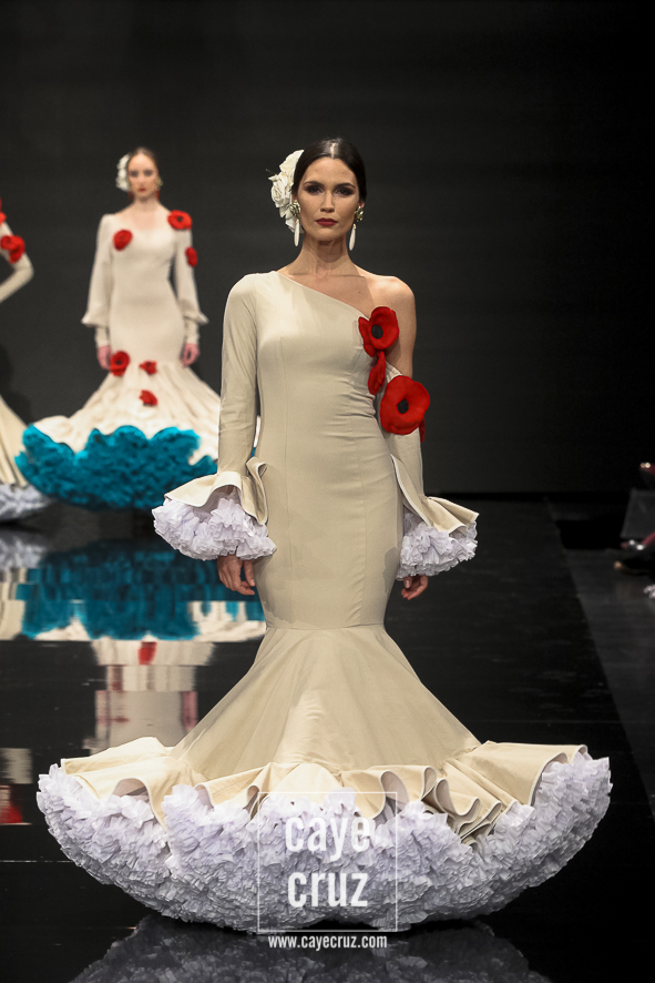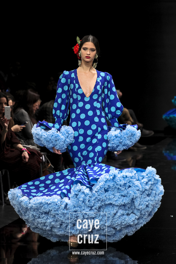El que fuera en su momento el novel más precoz en llevarse un premio se ha convertido, en cuestión de pocos años, en uno de los diseñadores que mejor ha canalizado y entendido la flamenca actual. Se puede decir que su estilo floreció en el momento exacto y en el lugar exacto, y él le ha dado forma hasta dar con una flamenca sobresaliente, muy flamenca (sic) y sin aditivos. Porque todo absolutamente todo lo que veremos ver está en sus colecciones: lunares, aires setenteros, volumen, colores vistosos y ese pequeño detalle que, lo mismo es secundario, pero se basta por sí solo para destacar en el conjunto.