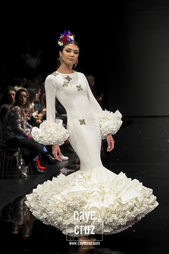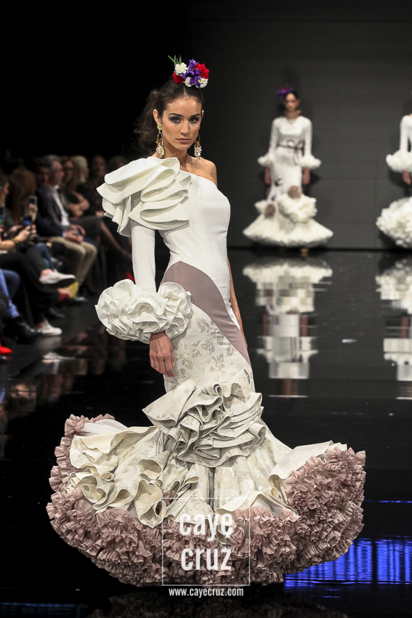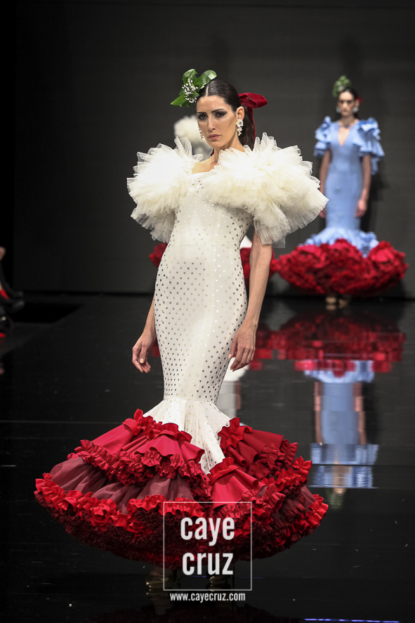 En líneas generales: Ernesto Sillero toma los colores propios de la Hermandad de la Vera Cruz y hace una colección en la que, por primera vez, su estilo se enfoca directamente hacia su pueblo, hacia una Lebrija por la que esta flamenca debería de pasearse.