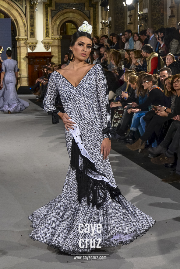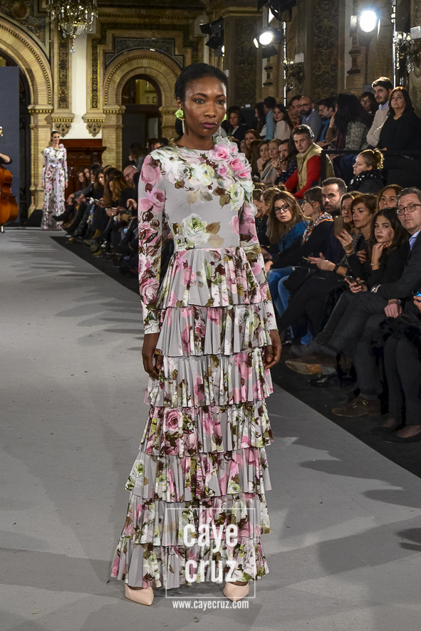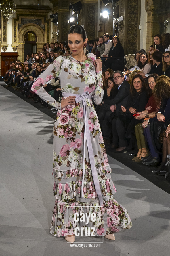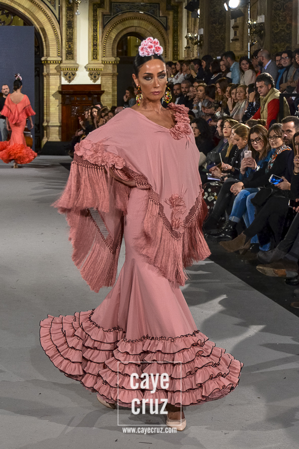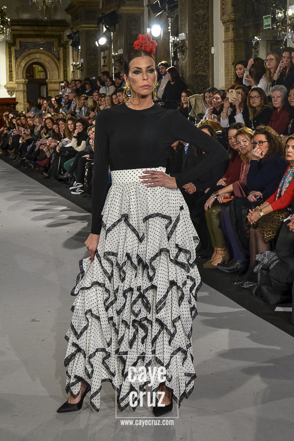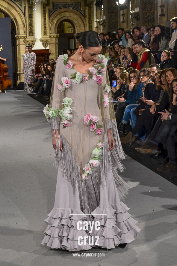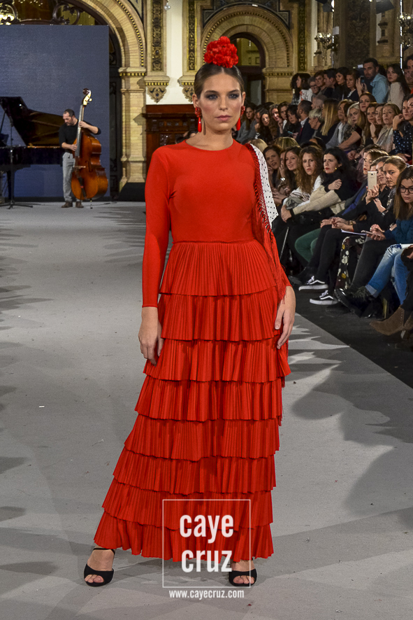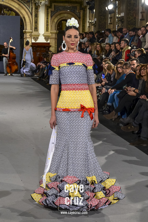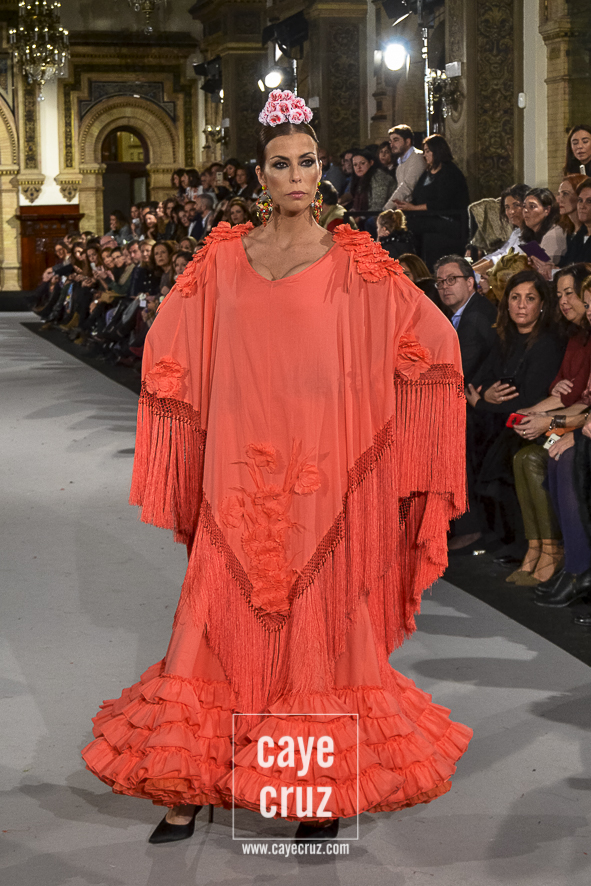 La que elija ser flamenca de José Hidalgo debe de tenerlo claro: su entorno natural es la Feria de Abril de Sevilla. Su lugar, por derecho, es estar en esa caseta de un módulo, de perímetro estrecho pero alargado, de luces cálidas, decoración profusa, mesas y sillas pintadas o una etiqueta estética cuidadosamente llevada.