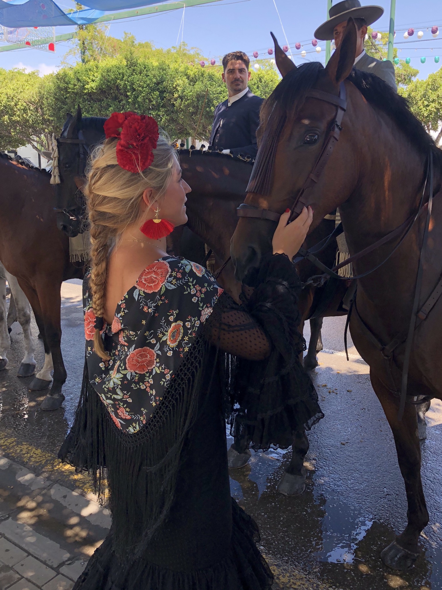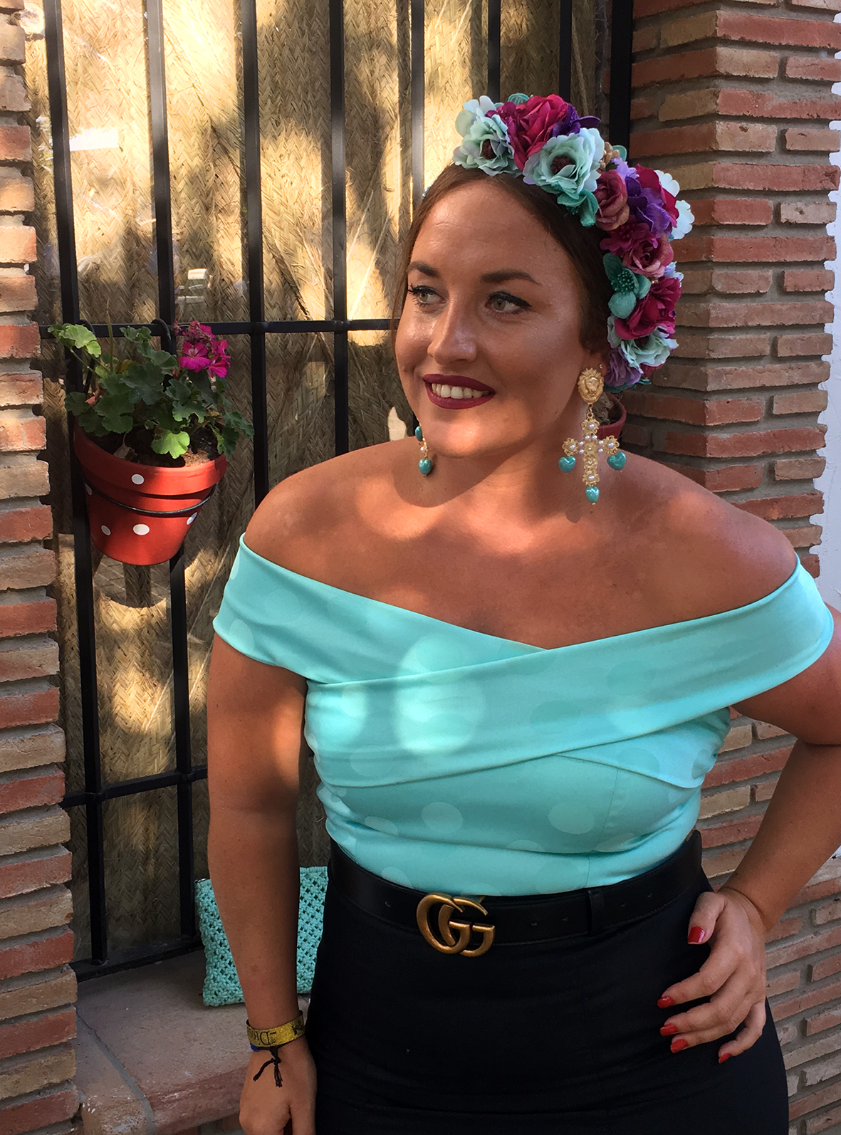Patricia con traje de Micaela Villa en la Feria de Málaga