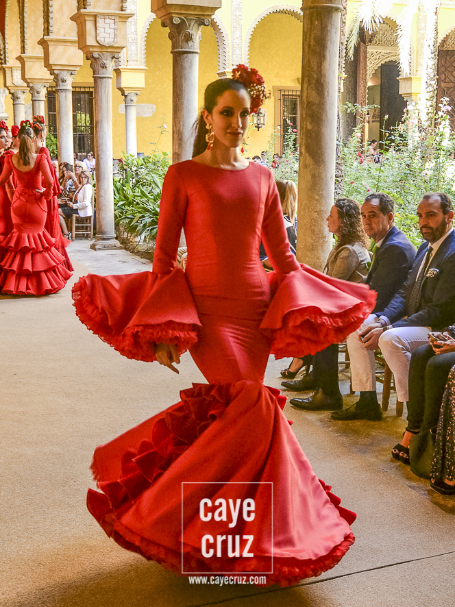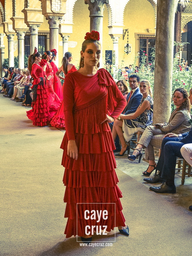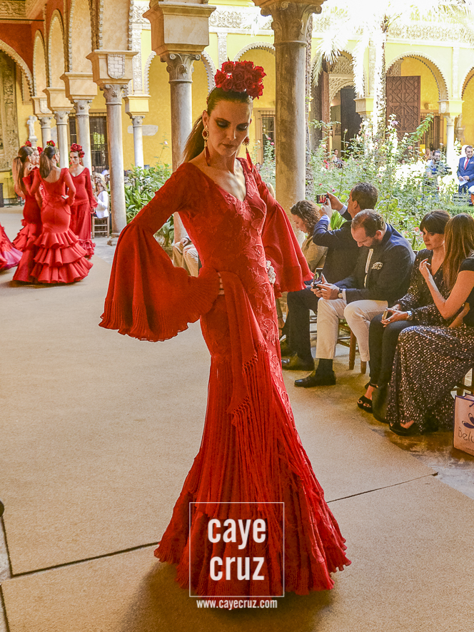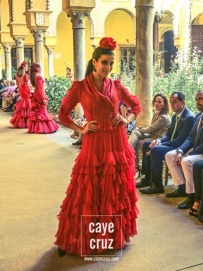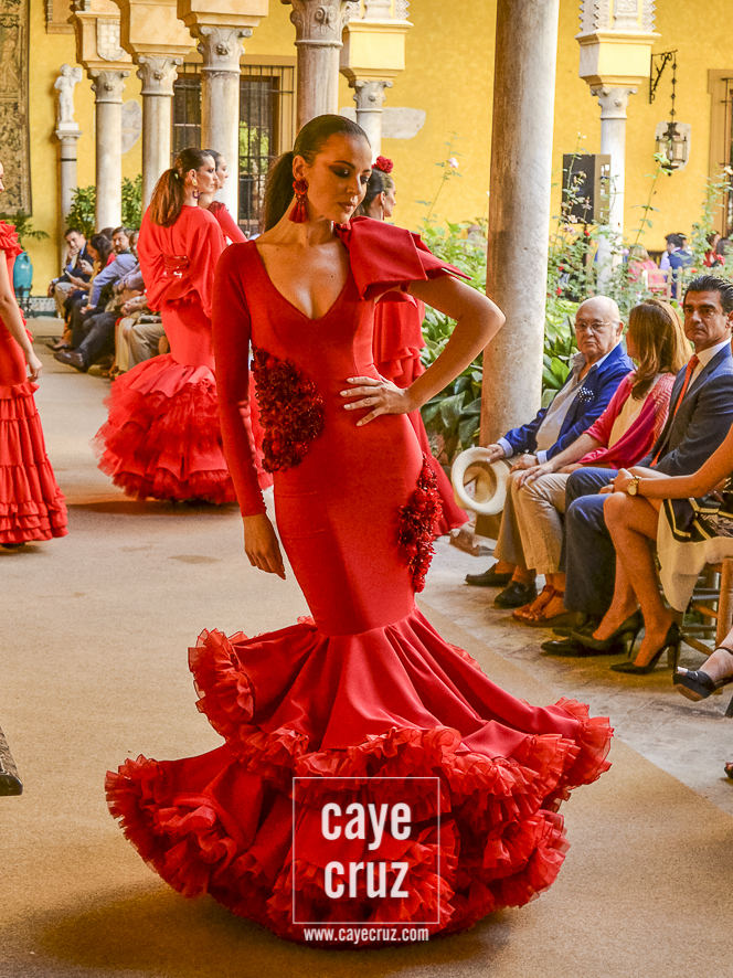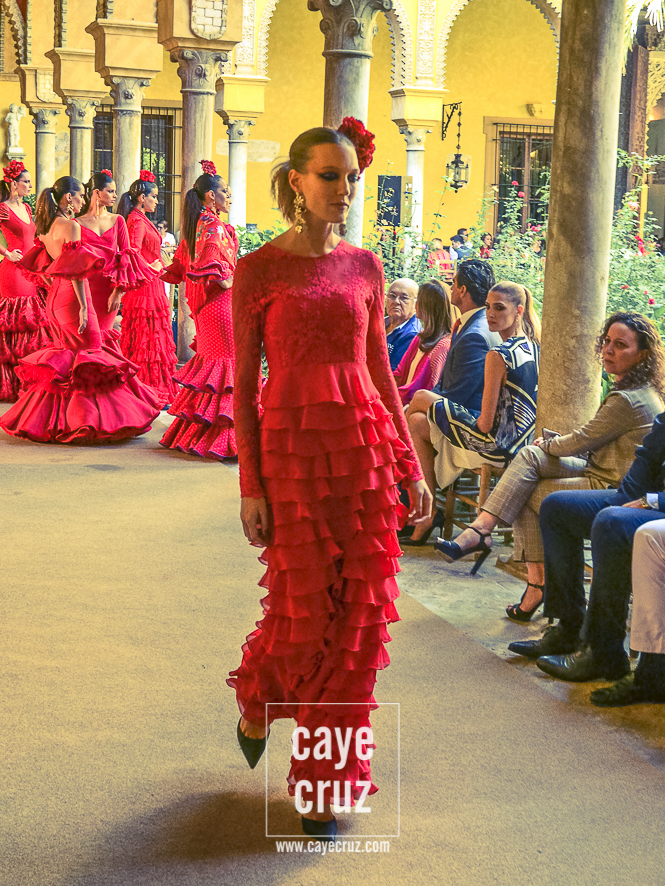 Todos los ingredientes y todos los actores estaban allí para adelantarnos lo que viene: quién desfila, quién regresa, quién debuta, quién vuelve o quién tiene mucho que contar. Hubo de todo en este adelanto monocromático en el que solo los complementos añadieron algo de color al desfile. La elección tampoco parecía casual: tras el blanco, negro y dorado de la edición anterior, nada más flamenco que el rojo para que a todos nos entrasen ganas de moda flamenca. En muchos de ellos vimos detalles de lo que, creemos, se llevará en 2018. Posibles tendencias, posibles cortes o patrones o incluso algunos adelantos directos de colección. Además, pudimos conocer algunos detalles de la pasarela que os resumimos a continuación: