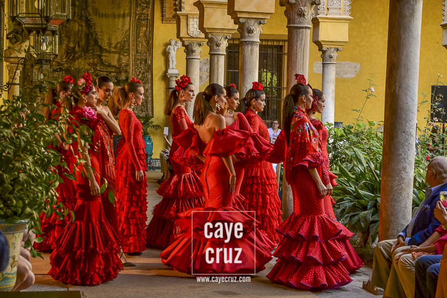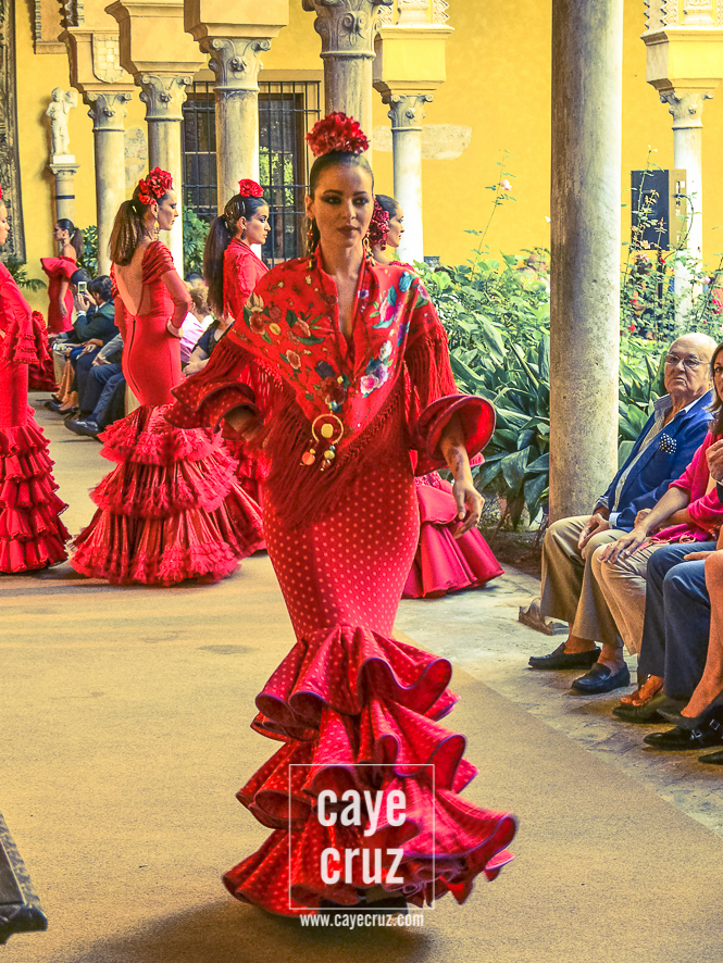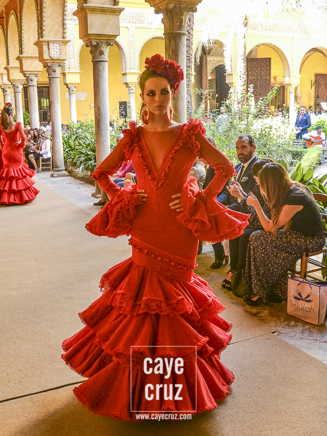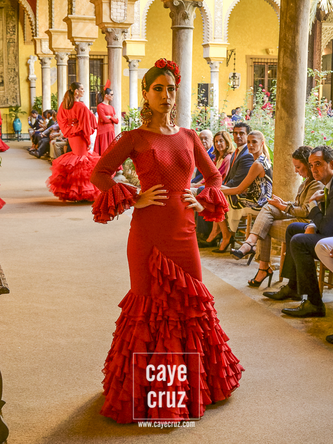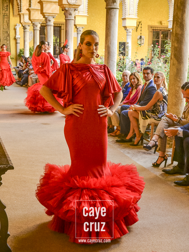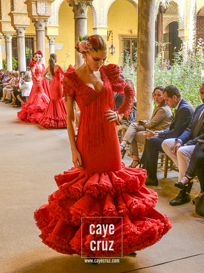 Todos los ingredientes y todos los actores estaban allí para adelantarnos lo que viene: quién desfila, quién regresa, quién debuta, quién vuelve o quién tiene mucho que contar. Hubo de todo en este adelanto monocromático en el que solo los complementos añadieron algo de color al desfile. La elección tampoco parecía casual: tras el blanco, negro y dorado de la edición anterior, nada más flamenco que el rojo para que a todos nos entrasen ganas de moda flamenca. En muchos de ellos vimos detalles de lo que, creemos, se llevará en 2018. Posibles tendencias, posibles cortes o patrones o incluso algunos adelantos directos de colección. Además, pudimos conocer algunos detalles de la pasarela que os resumimos a continuación: