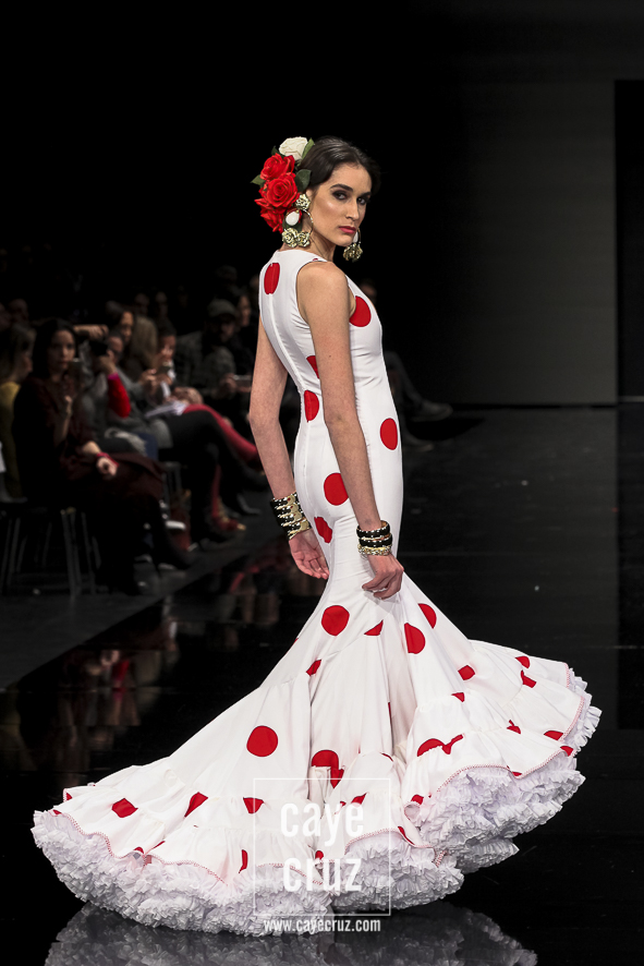El que fuera en su momento el novel más precoz en llevarse un premio se ha convertido, en cuestión de pocos años, en uno de los diseñadores que mejor ha canalizado y entendido la flamenca actual. Se puede decir que su estilo floreció en el momento exacto y en el lugar exacto, y él le ha dado forma hasta dar con una flamenca sobresaliente, muy flamenca (sic) y sin aditivos. Porque todo absolutamente todo lo que veremos ver está en sus colecciones: lunares, aires setenteros, volumen, colores vistosos y ese pequeño detalle que, lo mismo es secundario, pero se basta por sí solo para destacar en el conjunto.