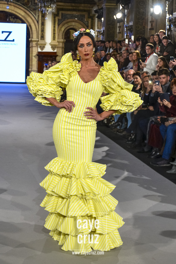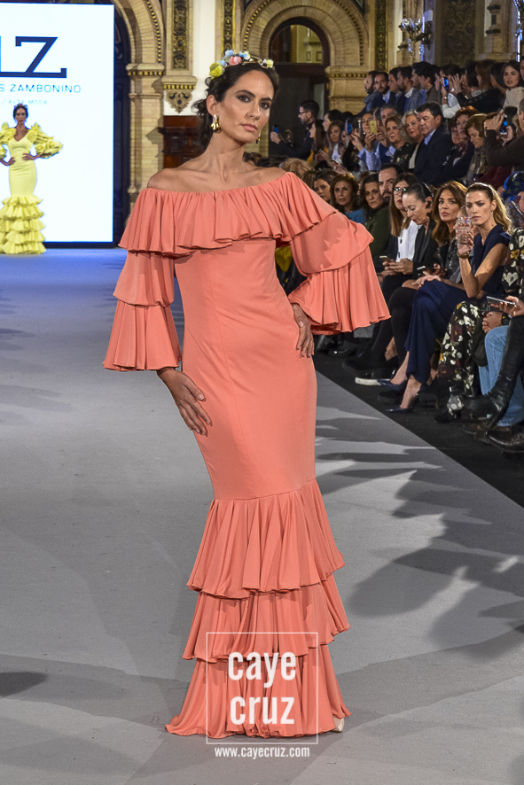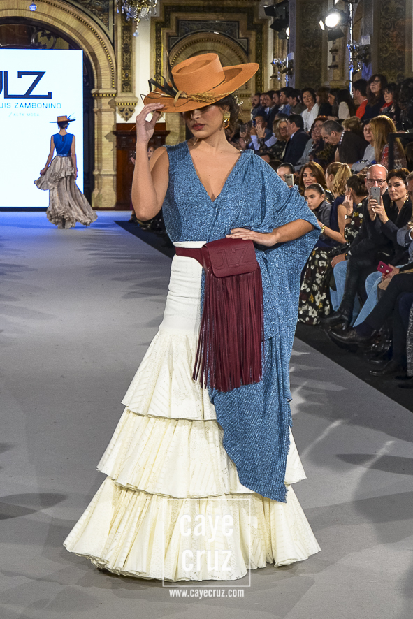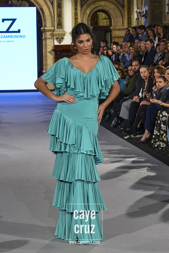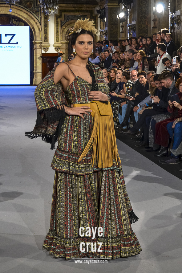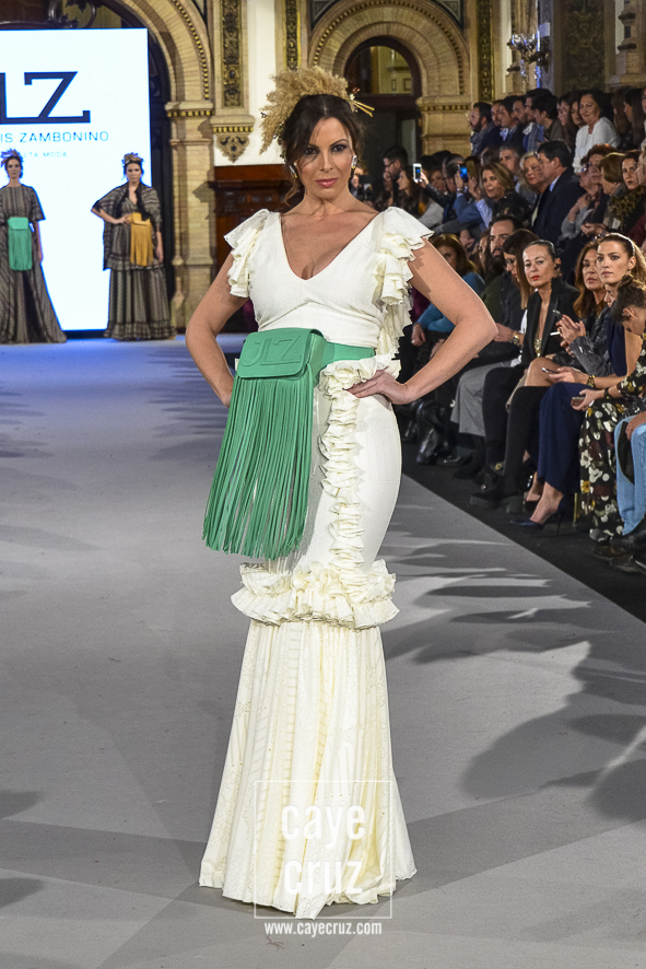 En conjunto, Zambonino siendo Zambonino pero con un toque muy hecho a la flamenca del 2018. Y ese volver tiene una lectura entre líneas muy interesante: si te diste a conocer en flamenca y vuelves a desfilar en una pasarela donde la gente espera y quiere ver volantes (os recuerdo que el grueso de las entradas son compradas), lo que debe hacer el diseñador es mostrar eso mismo, estilismos y trajes de flamenca. Te guste más, te guste menos, es lo que Zambonino ha hecho y ese apunte deberían tenerlo muchos en cuenta…