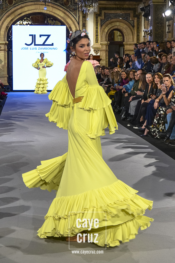 En líneas generales: José Luis Zambonino vuelve a desfilar en flamenca con una colección donde la elección de tejidos, el juego de los volantes en mangas o faldas y el aire ligero con toques chic confirman el estilo de sus creaciones que saben adaptarse al mercado actual.
