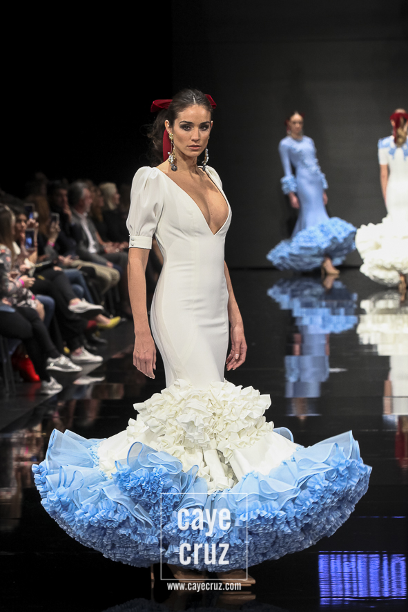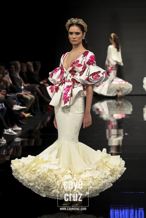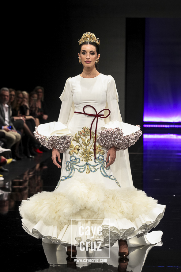 En líneas generales: Ernesto Sillero toma los colores propios de la Hermandad de la Vera Cruz y hace una colección en la que, por primera vez, su estilo se enfoca directamente hacia su pueblo, hacia una Lebrija por la que esta flamenca debería de pasearse.