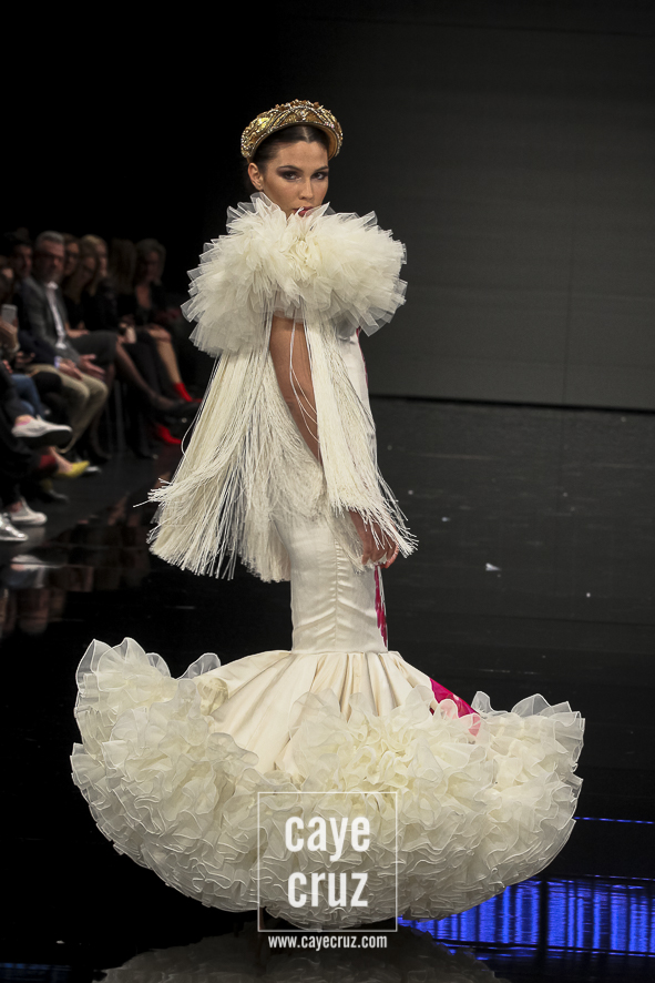El ‘Judas’ de Ernesto Sillero juega con el simbolismo, con los detalles que recuerdan para quedarse en unos diseños en los que el lebrijano reafirma su identidad y la personalidad de su flamenca, con ese estilo particular donde las faldas se llenan de volúmenes y las partes de arriba concentran un mayor trabajo de patronaje y diseño. Así, su flamenca mantiene la línea marcada desde su primera colección como profesional (donde la elegancia ha estado por encima de otros factores) a la vez que empieza a introducir de manera leve algunos detalles que podrían dar pistas de lo que estaría por llegar.