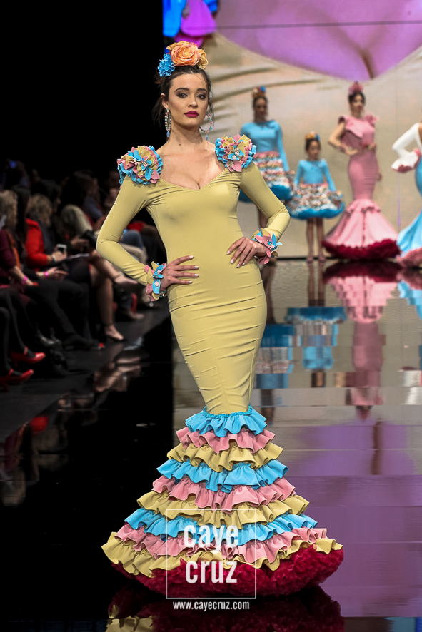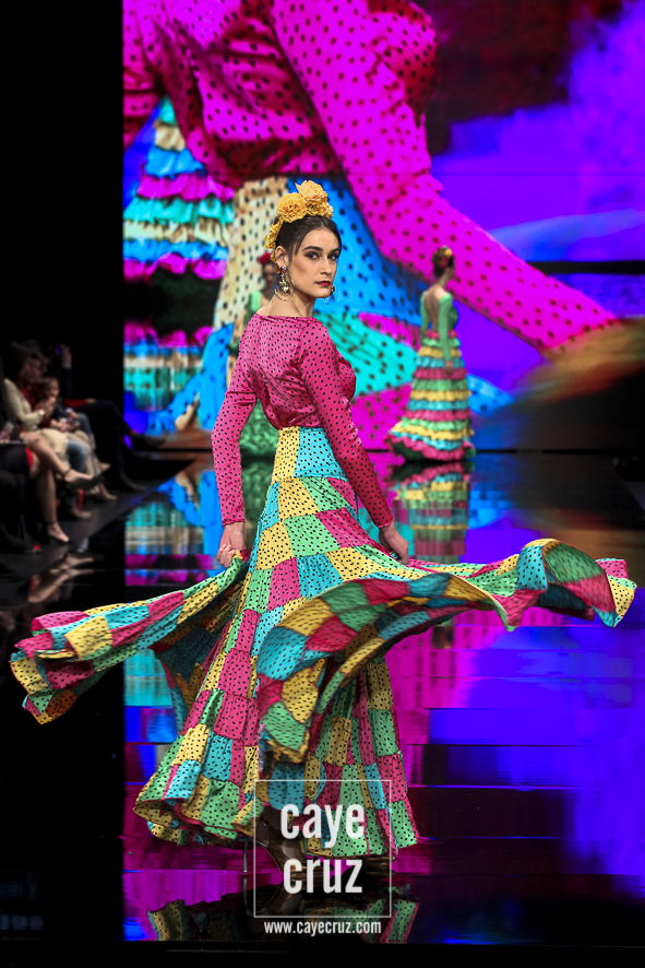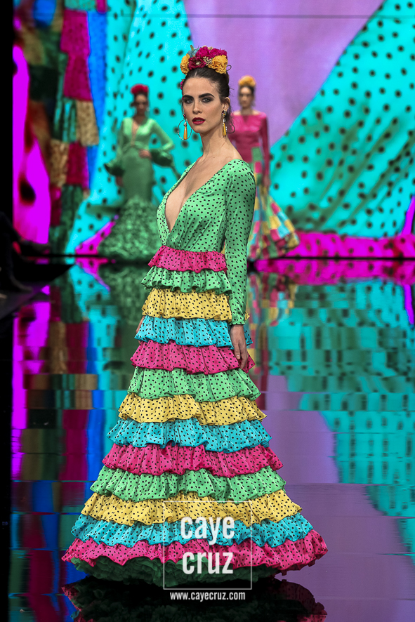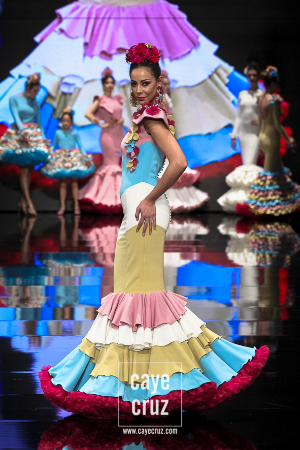 En líneas generales: Carmen Raimundo regresa a SIMOF con una colección en la que su flamenca empieza a buscar las ideas propias y detalles únicos para marcarse un estilo diferente y colorista que, en esta ocasión, tienen como punto de partida los colores de la isla de Santorini.