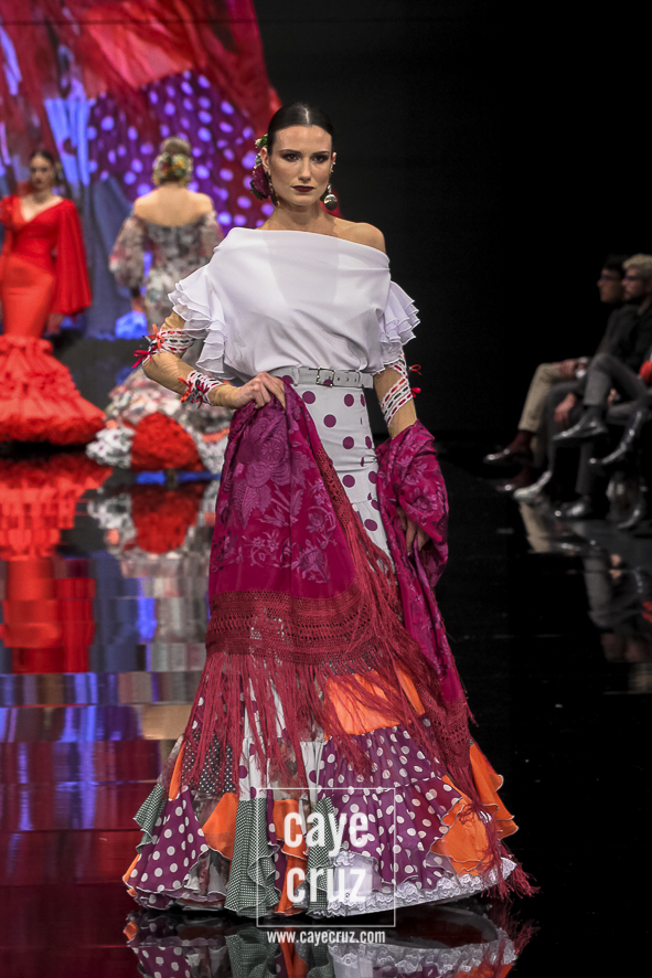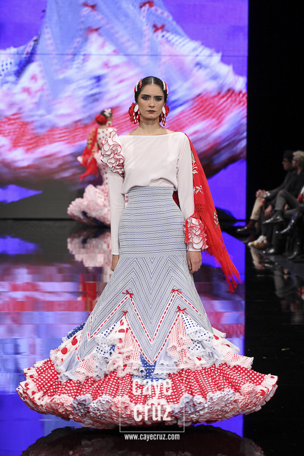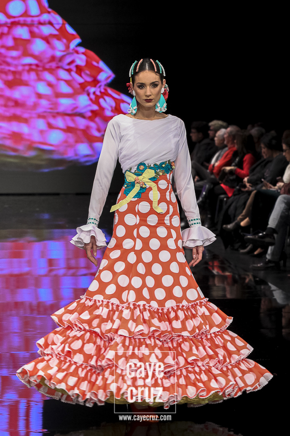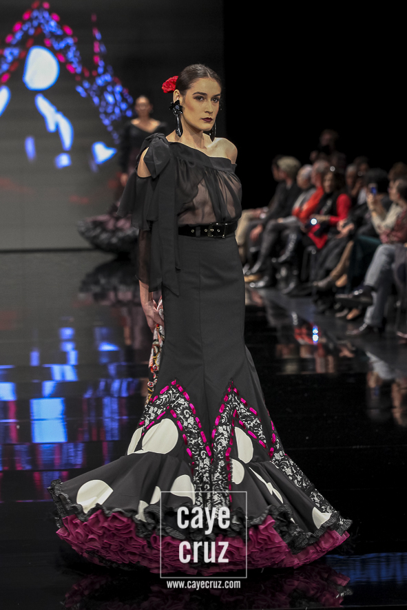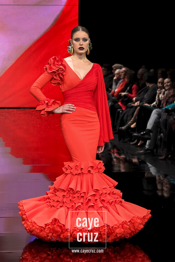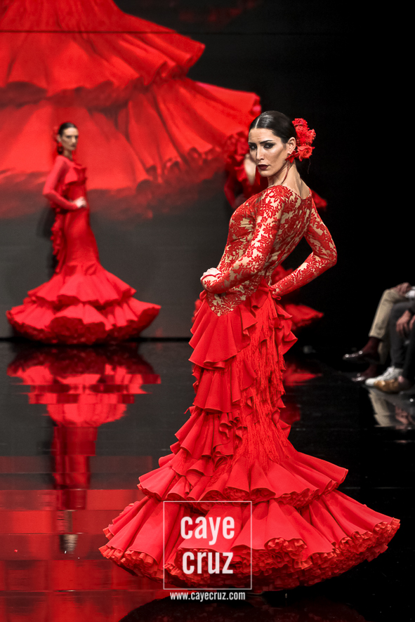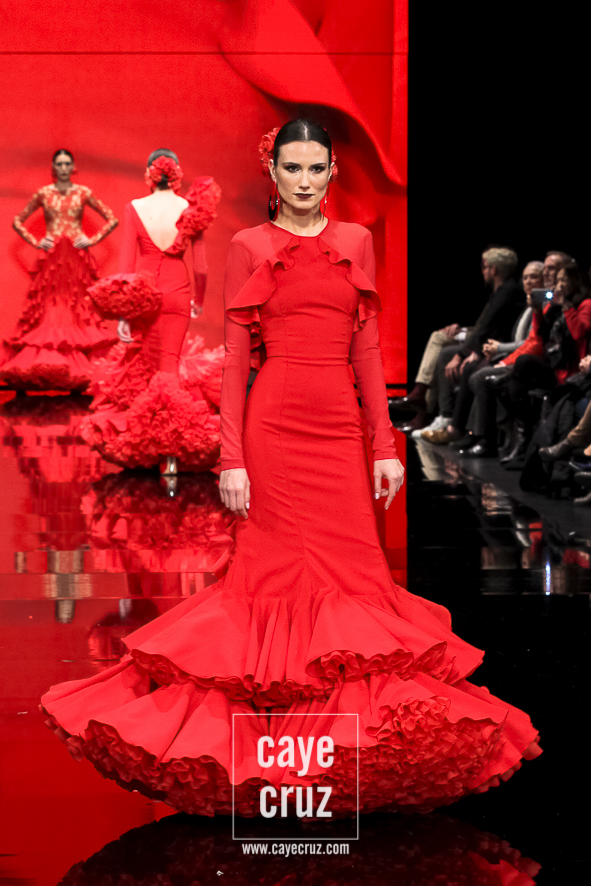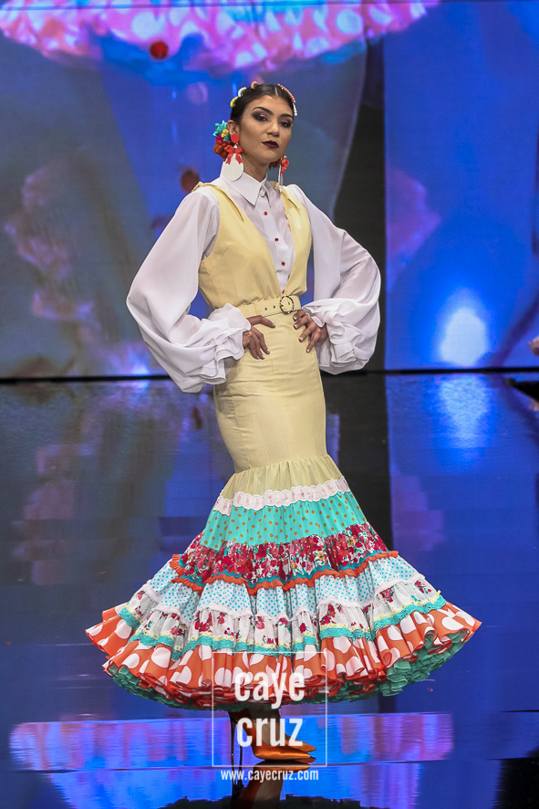 Flamencas que buscan en el rojo o en el negro la huella vital de su creador frente a un estallido de color, de formas, de lazos y de estampados que van abriendo la puerta a un estilo que se va definiendo, pero que aún sigue queriendo encontrar ese matiz, ese aire que lo haga único. Una conjunción de ideas donde el diseñador se vuelca en cada traje de manera libre, queriendo hacer en cada uno lo que le ha inspirado en el momento y uniéndolos todos en un desfile en el que sentimiento artístico y flamencura casan a la perfección.