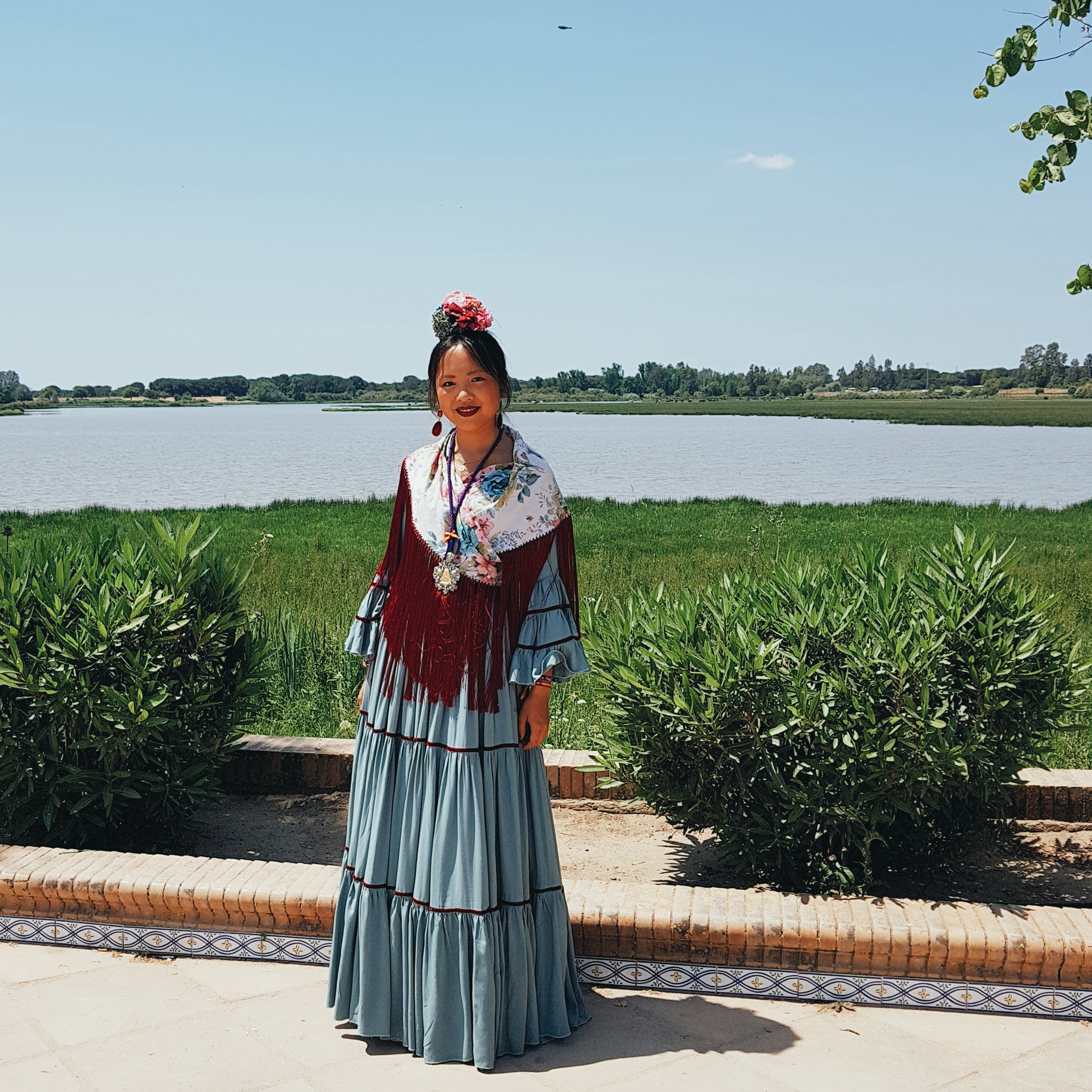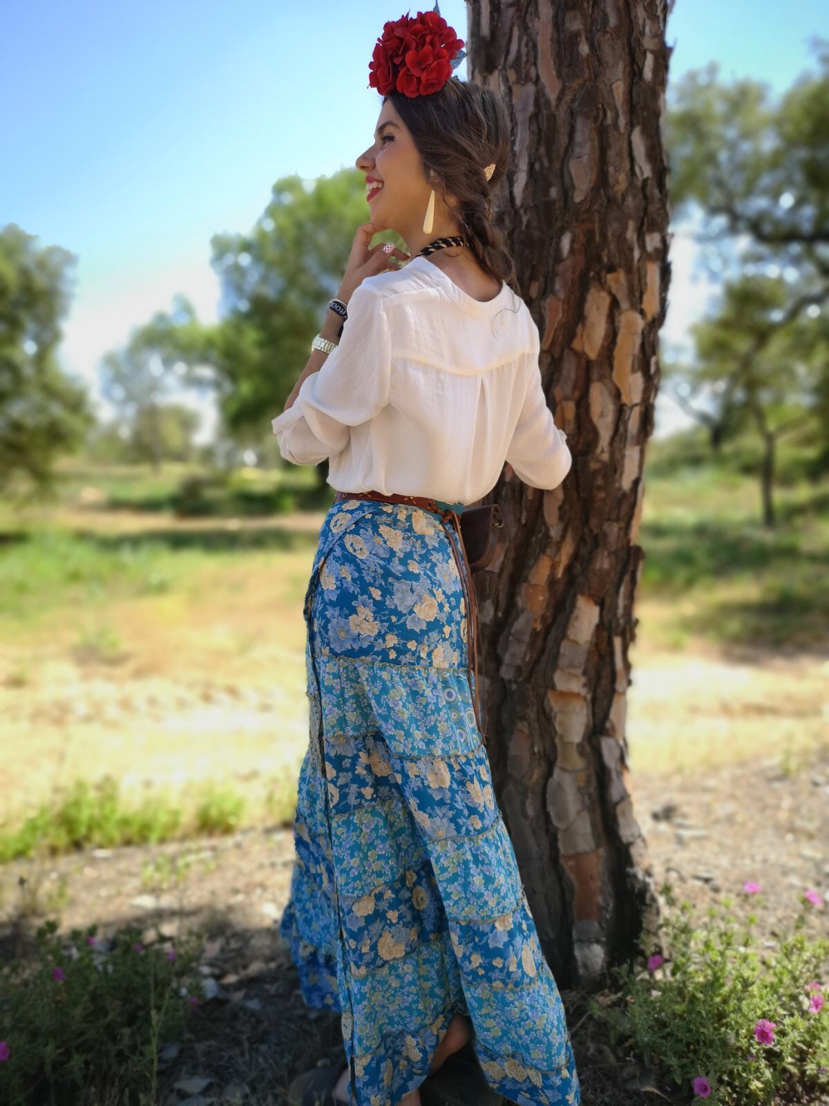 Romería del Rocío: Luisa con diseño de Rocío Martín.