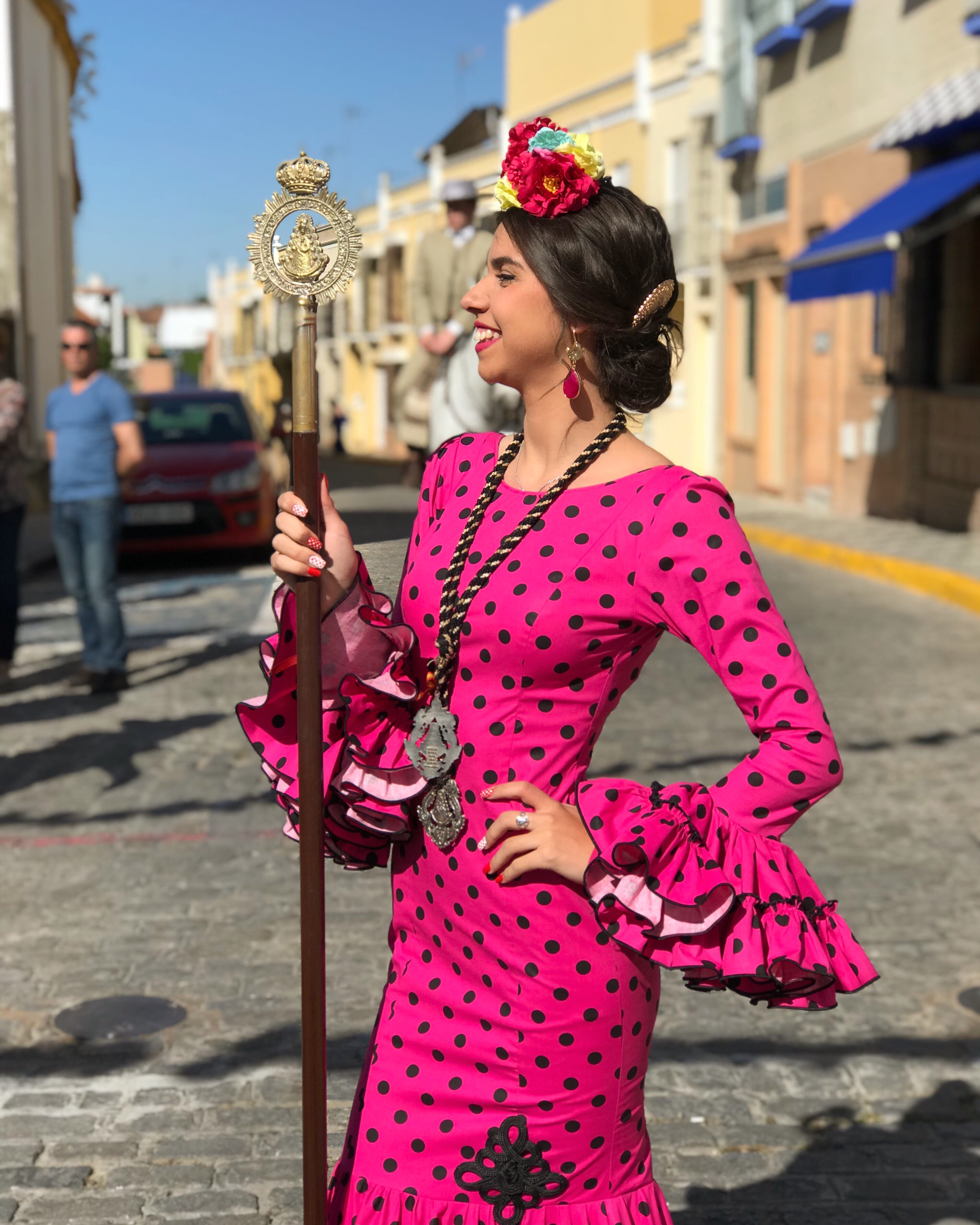 Romería de Mazagón: Claudia con diseño de Adelina Infante.