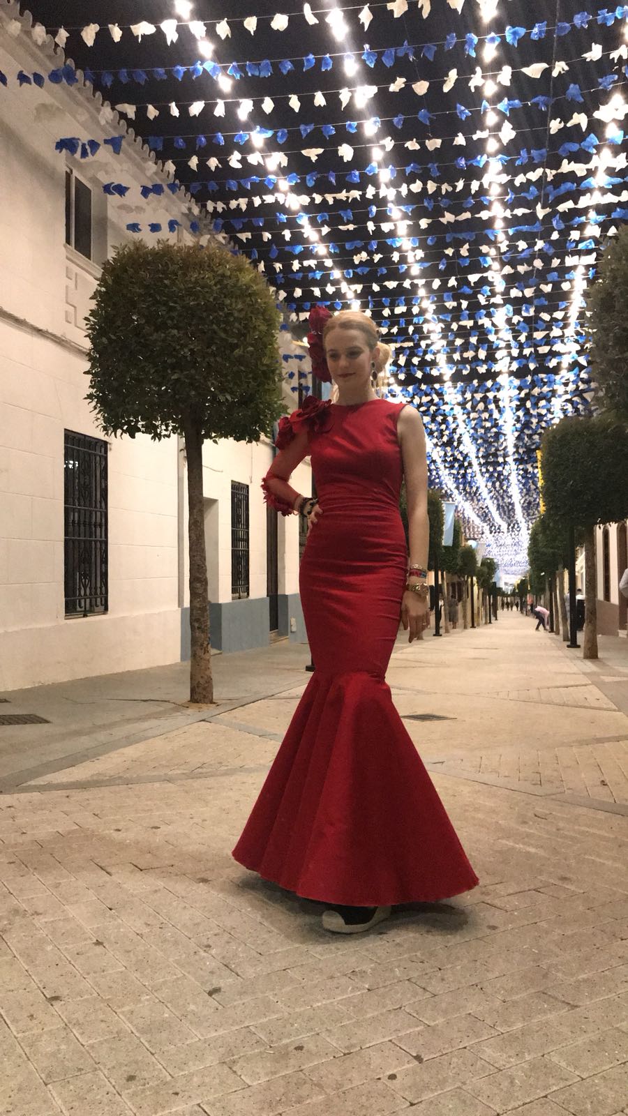 Feria de Dos Hermanas: Nuria García con diseño de Alex de la Huerta.