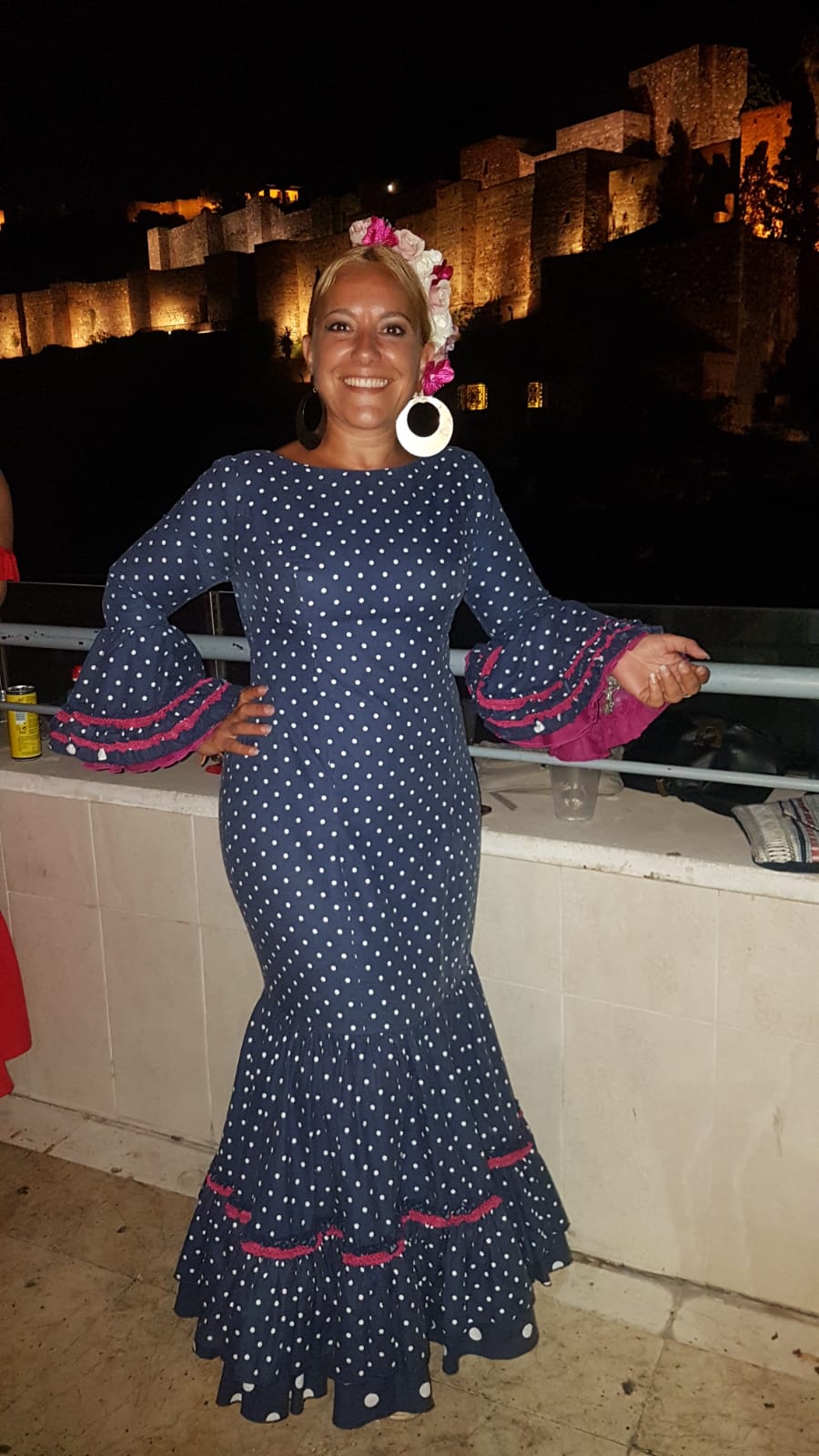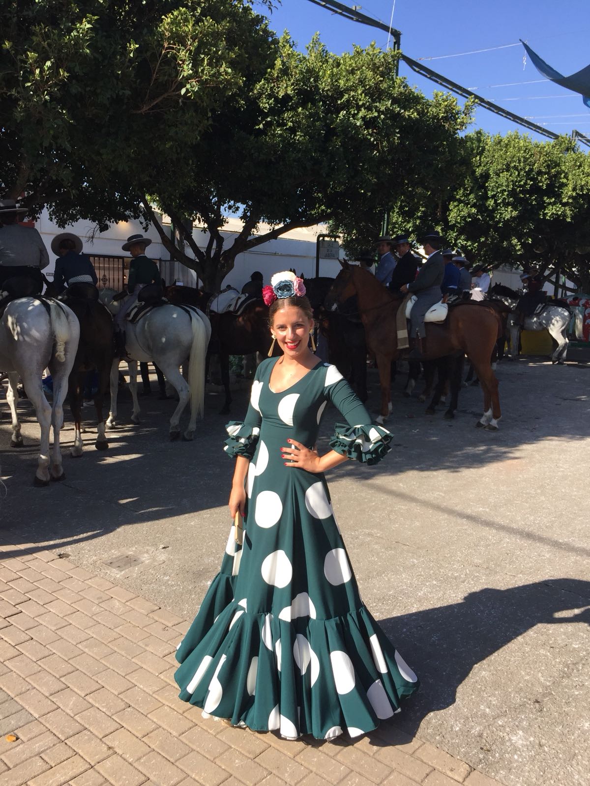 Patricia con traje de Micaela Villa en la Feria de Málaga