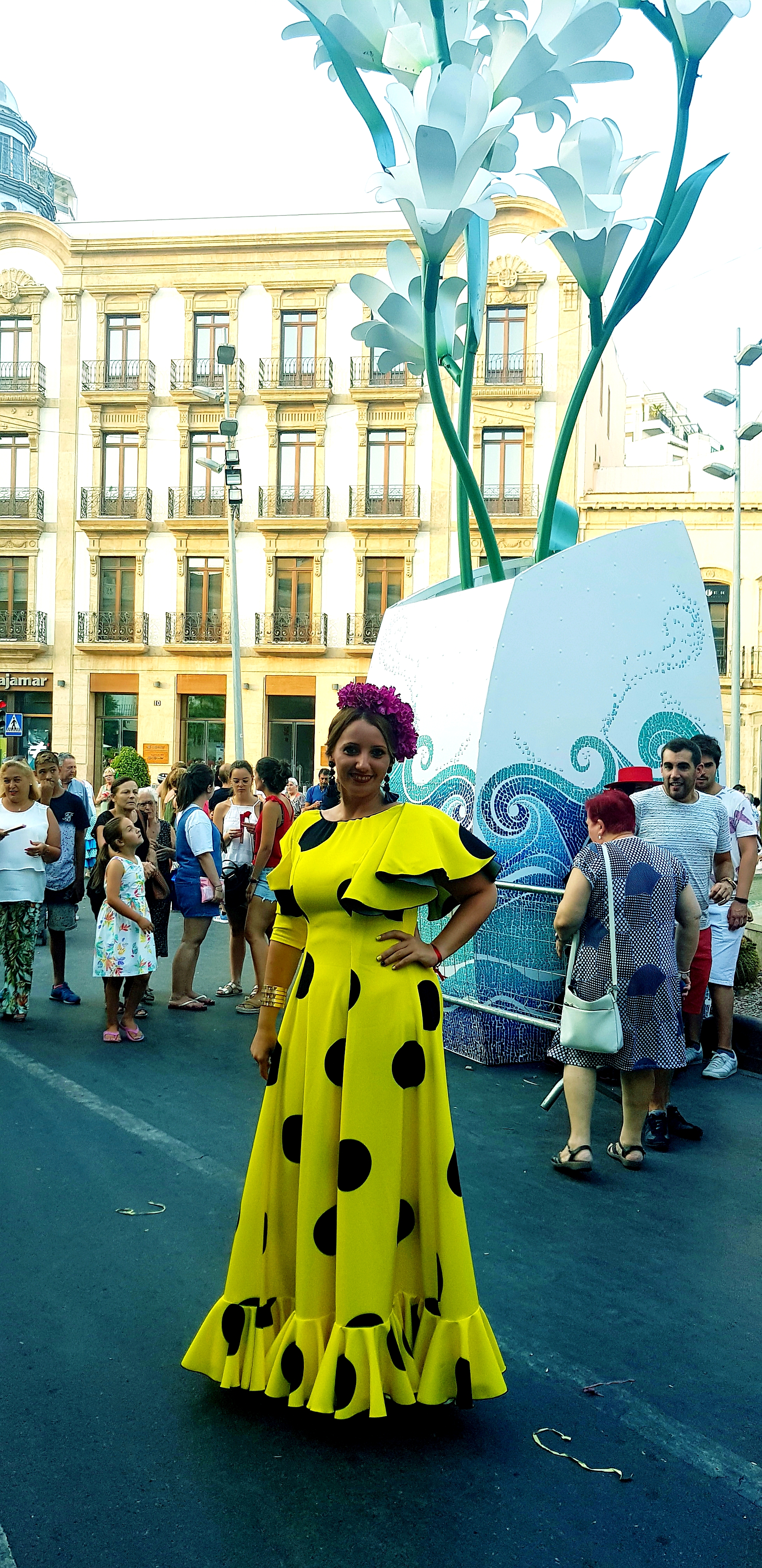 Con Málaga, Almería y Ceuta a la cabeza, las festividades también nos han dejado estampas como la Romería de Palos de la Frontera, la Feria de La Puebla de los Infantes o la de Trebujena. Fiestas en torno al 15 de agosto, ferias que reivindican que las flamencas son también para el verano o volantes que desafían cualquier ola de calor… como la que vivimos en Málaga: este año tuve la oportunidad de conocer su Feria y a varios de sus diseñadores gracias a una invitación de Pilar Arregui. Una experiencia muy positiva y que sirve para comprobar como, aunque tengamos la misma cultura, nunca hay dos ferias ni dos estilos de flamencas iguales: cada pueblo y cada su ciudad tiene su propia idiosincracia. Puede que de puertas afuera algunas gusten más o gusten menos, pero a veces, eso que vemos, es la interpretación local que se le ha dado a los volantes. Y como muestra, aquí van nuestras flamencas en las Ferias de Verano que un año más nos habéis hecho llegar y nos habéis permitido completas con las fotos que habéis enviado a nuestro correo electrónico. ¡Gracias a todas por las fotos, por vuestros mensajes y, sobre todo, por hacer querer hacer visible lo que se lleva en vuestros pueblos!
