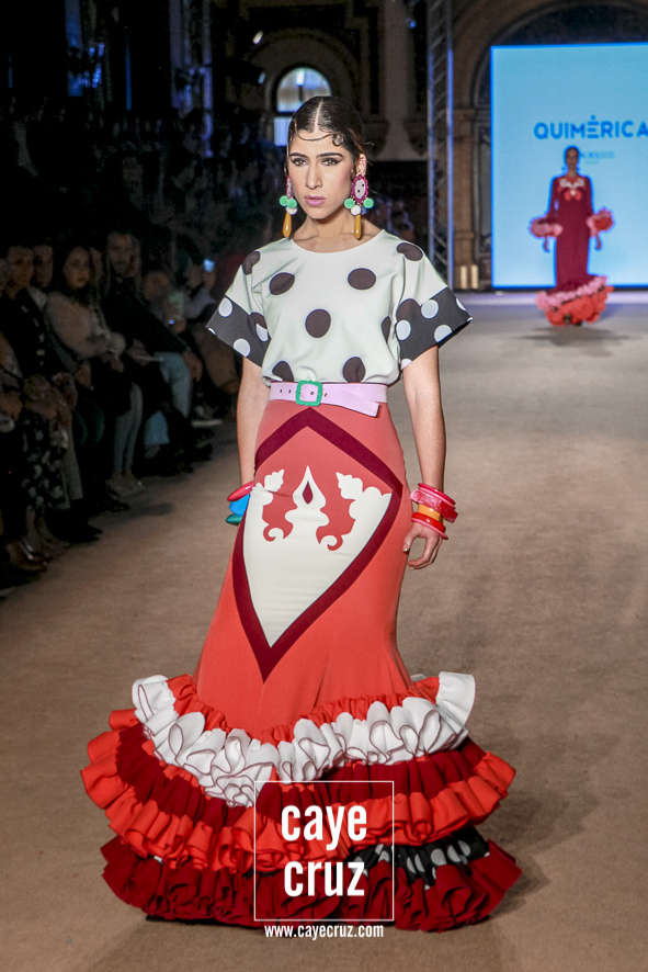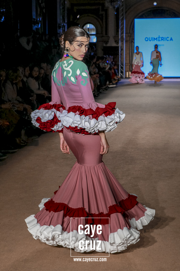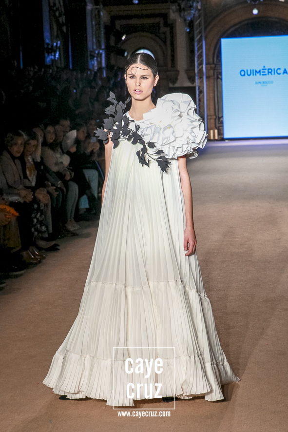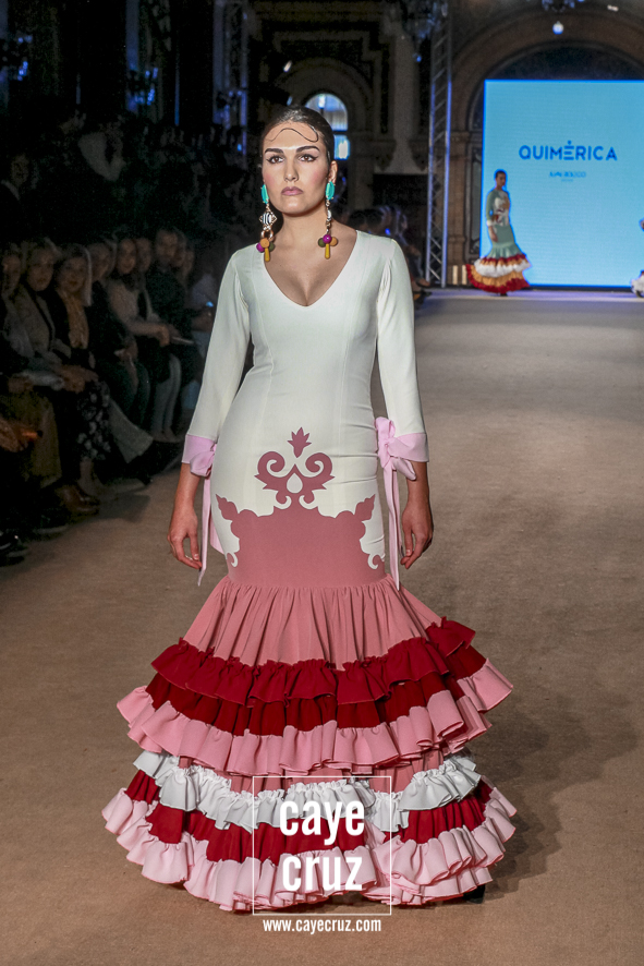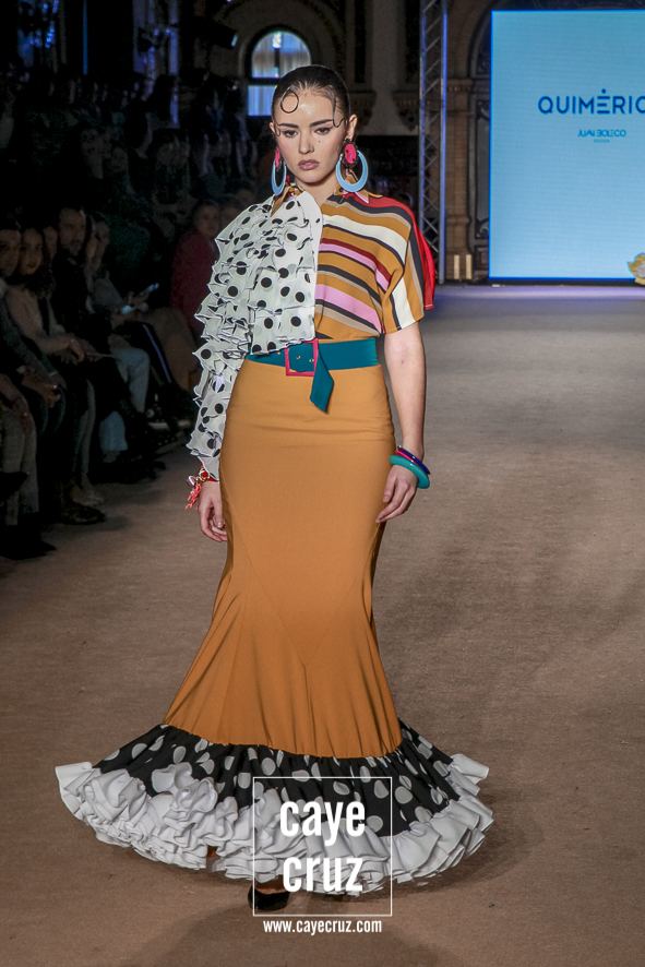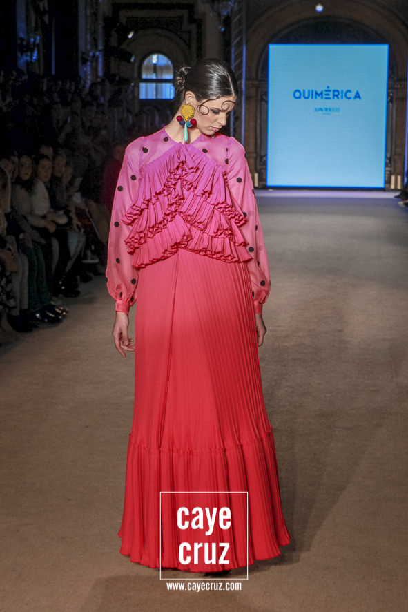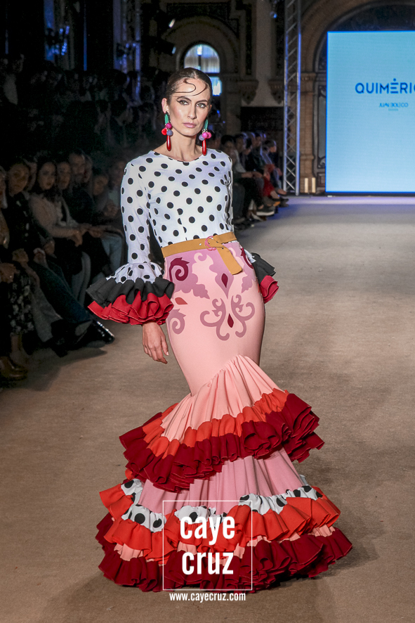 Cuando en varias ocasiones he podido entrevistar a diseñadores que han obtenido un premio que, de manera no oficial, los acredita como profesionales, muchos de ellos dicen que a lo mejor no es el momento de colocarse la etiqueta, que para eso hace falta tiempo y bagaje. No es su caso: Juan Boleco ya es todo un profesional en la moda en general y la flamenca en particular, pero ha tenido que ser su particular ‘Quimérica‘ la que nos acerque a su momento de madurez como creativo, a ese momento en que sus bases están asentadas, su universo construido y su imaginación ya puede permitirse el lujo de crear sobre sí misma. ¿Cómo se vislumbra esa madurez? Veamos las claves de la colección: