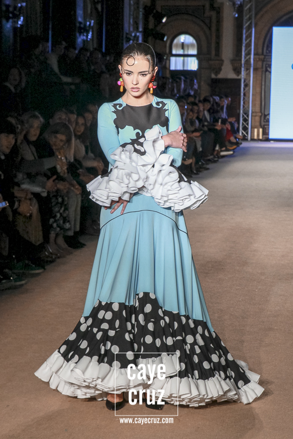 2. De la flamenca atemporal a la flamenca polivalente. Casi todas las salidas te dejan con la misma duda: ¿Para Feria o para Rocío? Aquí os decimos que directamente para ambas y que la separación entre ambos estilos aquí se ve muy difusa. Ademas, la modernidad que acompaña a cada uno de los bocetos invita a traducir muchos de ellos a moda urbana o de fiesta. Porque… ¿Qué nos impediría apostar por algunos de estos looks para un evento no flamenco? Juan Boleco (es de los pocos que) ha entendido que es preferible que tu colección traspase el lenguaje de las fiestas de primavera y que esos patrones sean polivalentes o para cualquier tipo de ocasión. Optimización de recursos se llama.