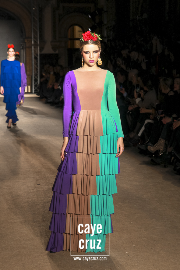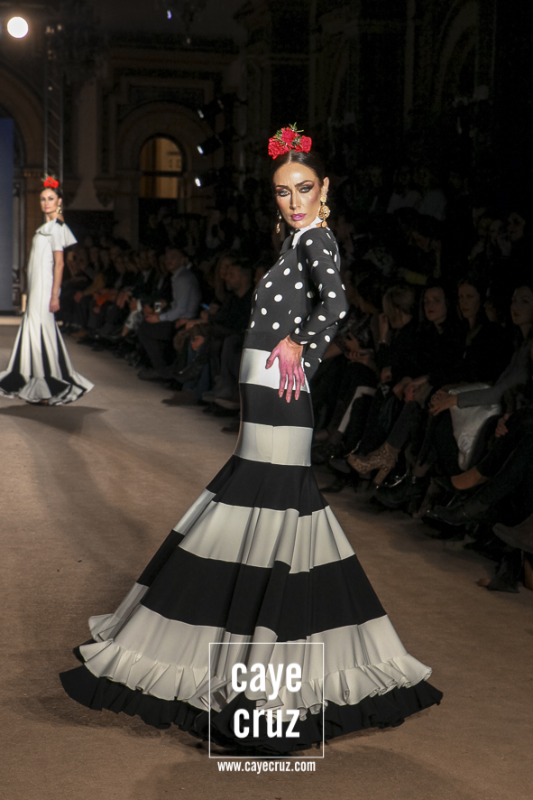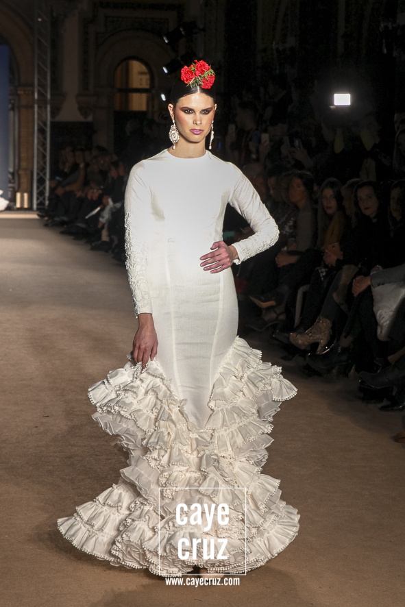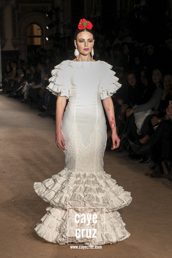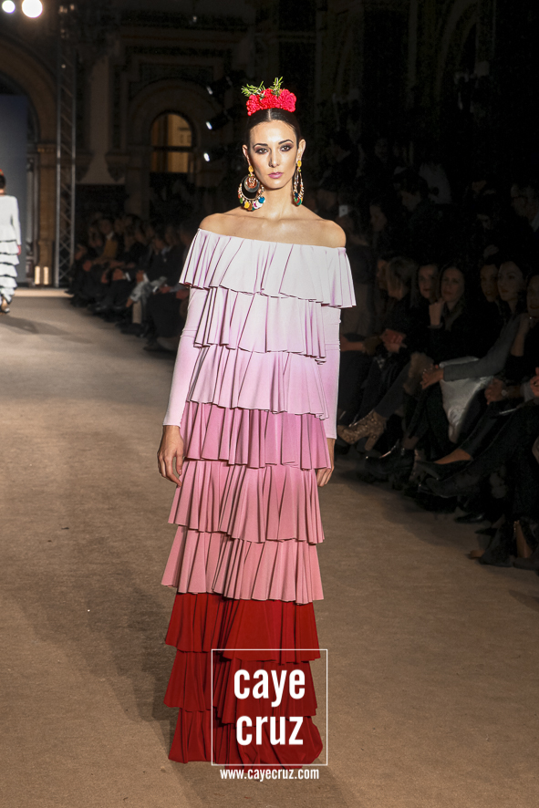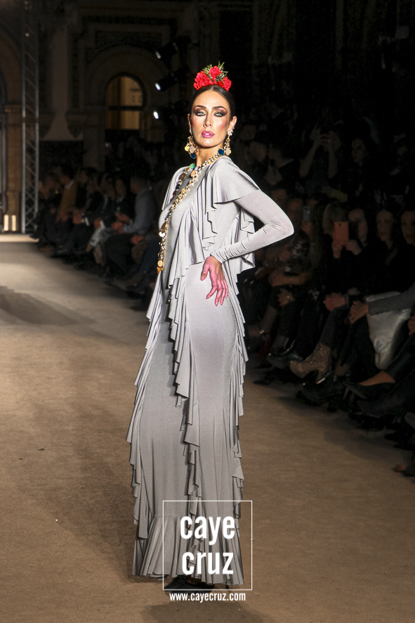 4 Cante de la mujer gitana y de la flamenca. Si bien la elegancia perfectamente calculada y esos diseños que juegan con los límites flamencos, la colección es tan flamenca y gitana como lo pretende ser, y lo hace repasando casi todos los posibles volantes, dando su sitio a los de capa, a los canasteros, a los de hilo o a los de paño. Todos tienen su sitio y recorren una colección donde el lenguaje de la costura y de la moda nos va recordando que, por mucho que evolucionen las ideas, fueron ellas, las gitanas, las primeras en llevarlo.