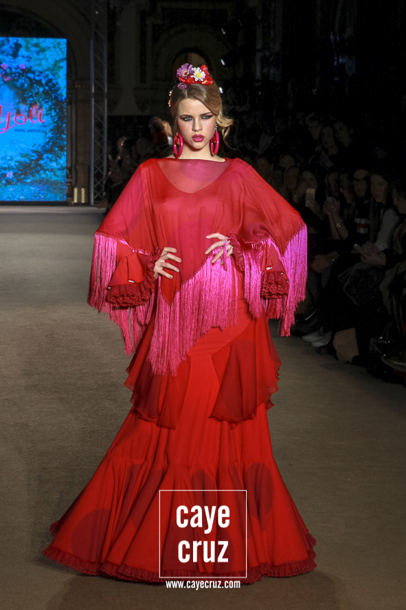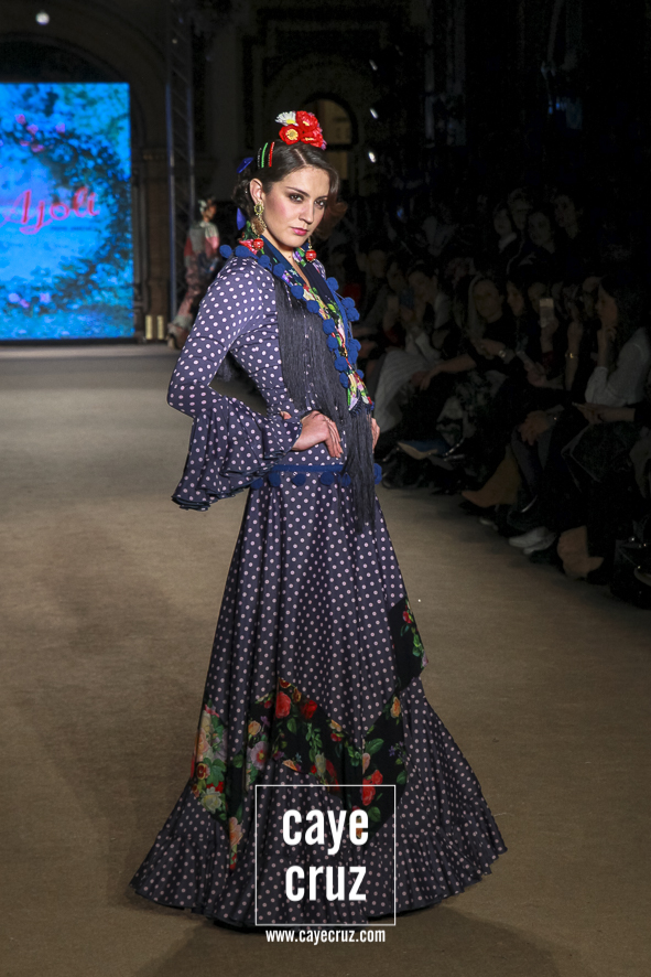 No solo los jóvenes hacen moda de inspiración flamenca. En un momento en que la flamenca se está abriendo a nuevas expresiones y en que los desfiles ofrecen diseños que responden a esos estilos de mujeres que quieren arreglarse de una manera menos convencional, El Ajolí también aporta su punto de vista y, de paso, recuerda que muchas ideas o patrones que ahora nos parecen muy novedosos desfilaron antes para Pepe Jiménez. El matiz, como siempre, está en el estilismo o en los aspectos técnicos que, para este año, se realza e invita a que algunos trajes (que por cierto, ¡Son trajes de flamenca!) tengan uso más allá de una fiesta popular.