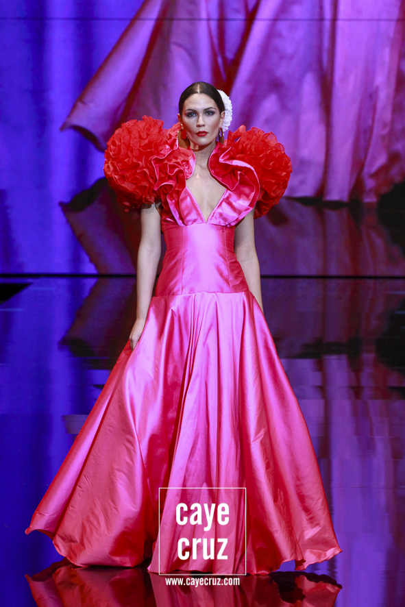 Si, es la colección para buscar clientela. Una dinámica que se impuso casi de manera inconsciente desde que el premio de nóveles si se traducía en el paso a pasarela profesional es que la primera colección que se presentaba era más comercial o suponía una traducción hacia lo ponible de las ideas que se premiaron junto a otras que muestran a las claras el estilo del diseñador. Y Gil Ortiz ha cumplido: ‘Mía’ es una propuesta donde se unen varias ideas que buscan mostrar al público que esas formas exageradas también quieren pasearse por la Feria o por el Rocío, todas ellas con el nexo común de ese punto chic que no olvida lo costumbrista.