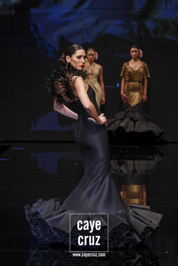 Su nombre sonó con fuerza pero tuvo que esperar para conseguir pasar a la lista de diseñadores que, desde 2013, pasean con auténtico orgullo el haber ganado los nóveles de SIMOF. Juanfran Gil Ortiz se une a esa saga de jóvenes creadores que están renovando el traje de flamenca y que encuentra en el almonteño una perfil con un peculiar gusto por lo exagerado y por lo elegante. Sin caer en los barroquismos de ‘Versalles’ o de ‘Ra’ pero con la determinación de consolidar sus ideas, Gil Ortiz se nos presentó con una colección que, a su manera, repite la misión y la estructura que sus predecesores elaboraron en su día: