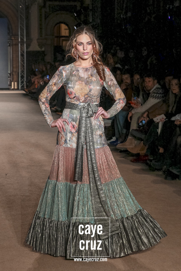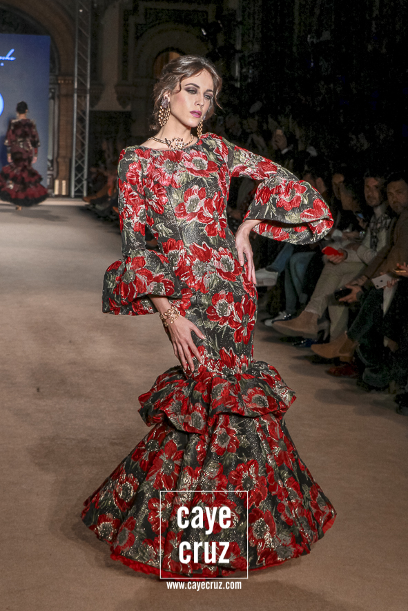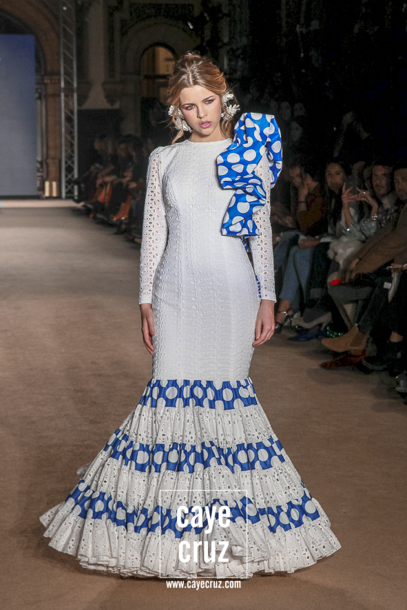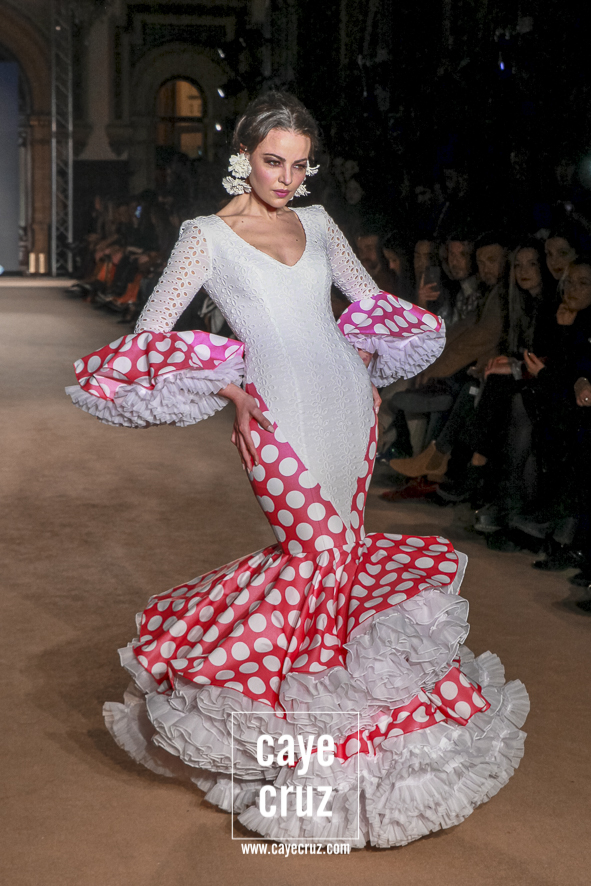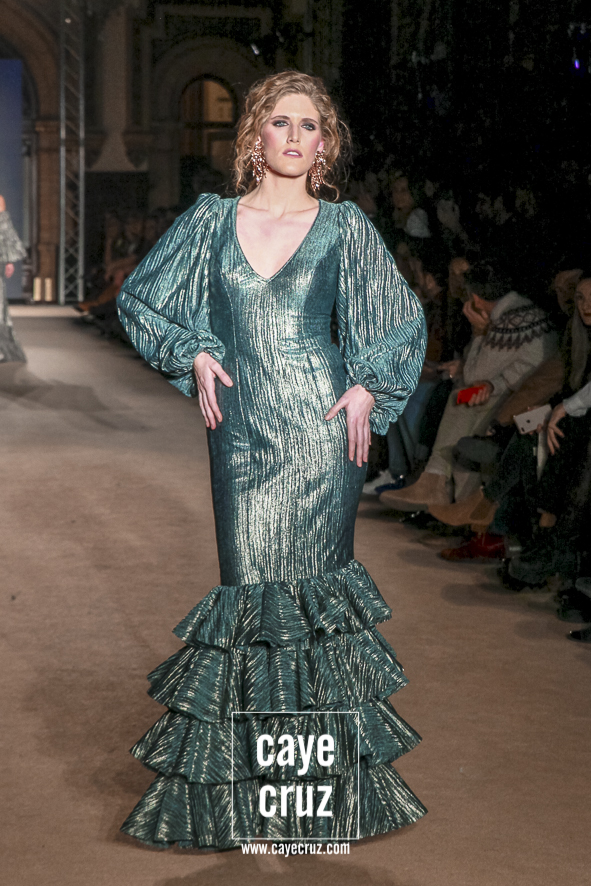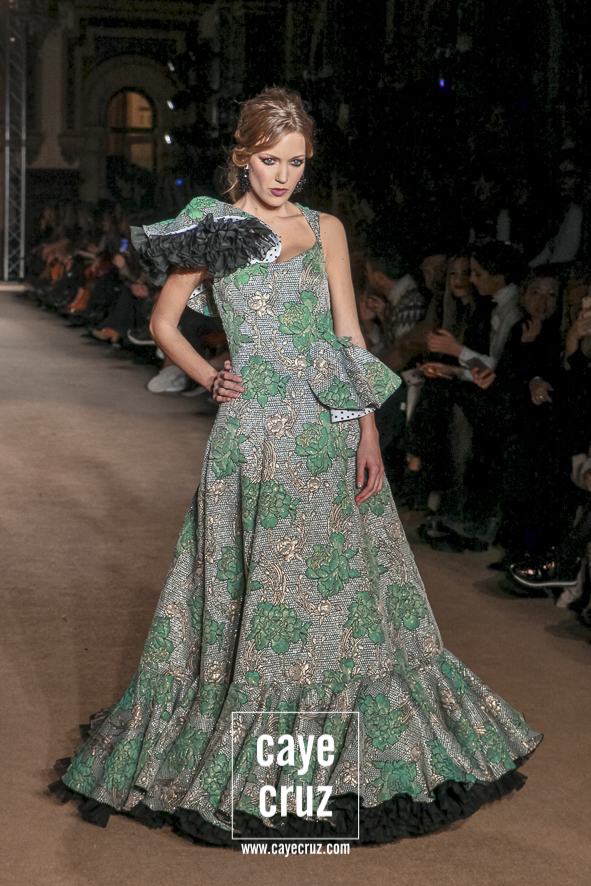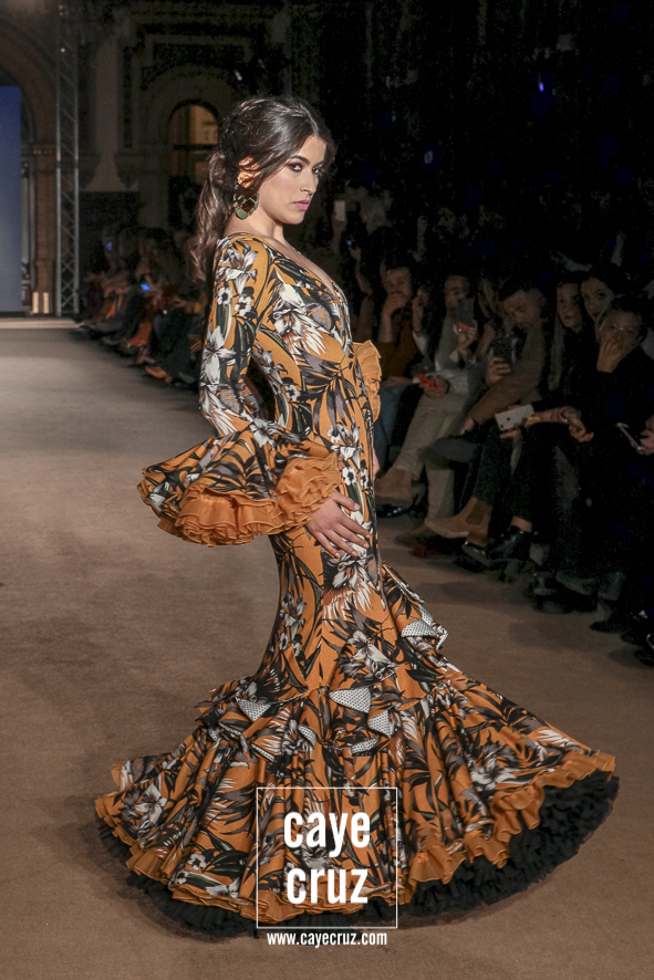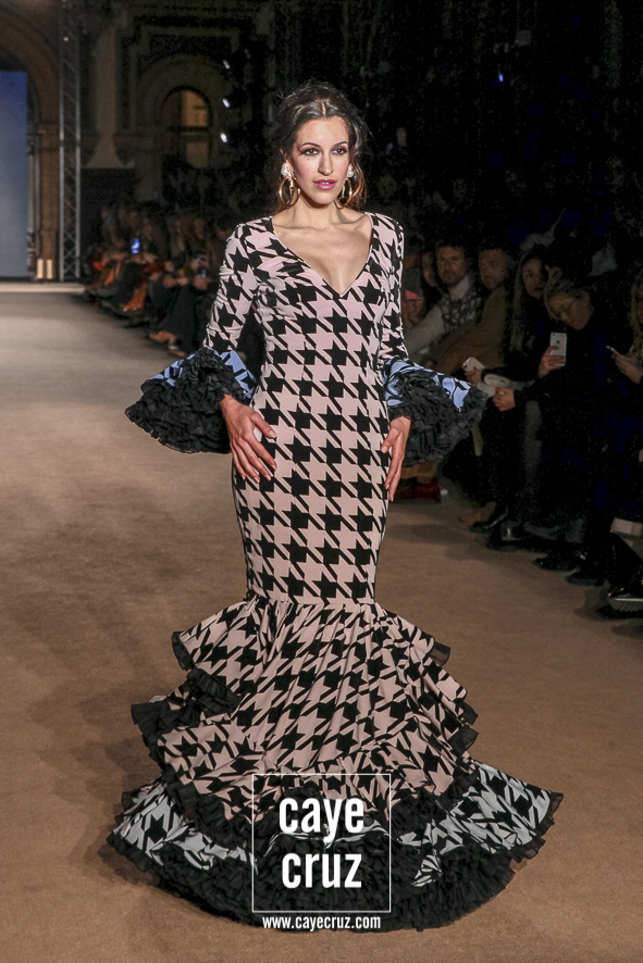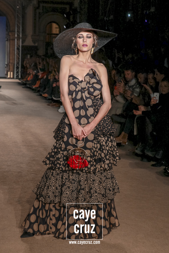 Paleta de colores complicada pero estrictamente personalista. A primeras, la selección de ocres, empolvados, marrones y tonos grisáceos que se dejan ver por buena parte del desfile no serían los más atrayentes para un público al que le cuesta dar concesiones en la escala cromática, pero el conjunto define a la colección, le da una entidad clara y nos deja varios momentos o detalles a apuntar, como la elección de las patas de gallo, lo bien que combinan los colores tierra, las verdaderas posibilidades que ofrece el marrón para la flamenca más moderna o la oportunidad que deberíamos dar a esos diseños hechos, en principio, para la noche pero que también se antojan para el día.
