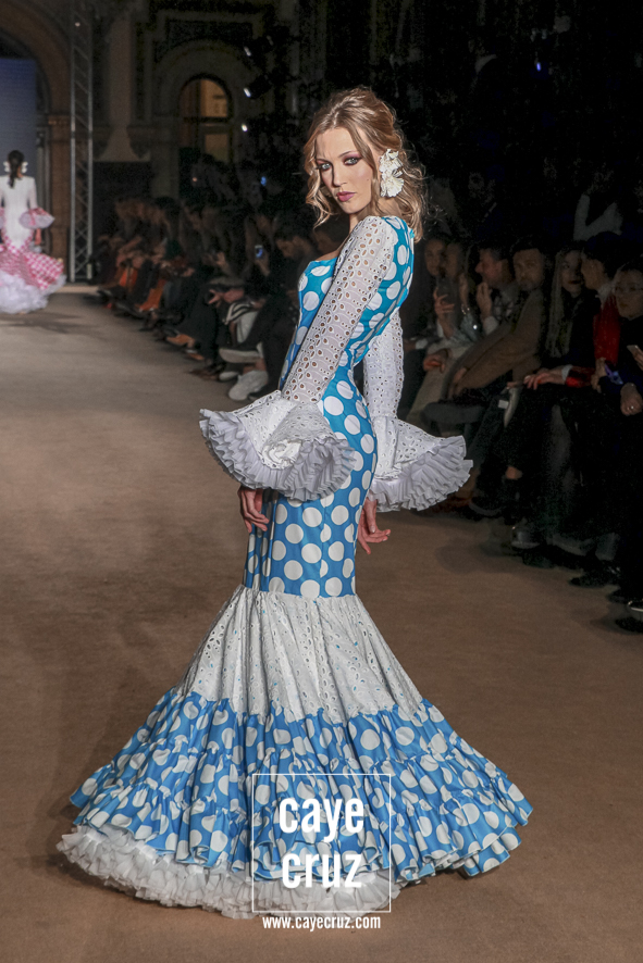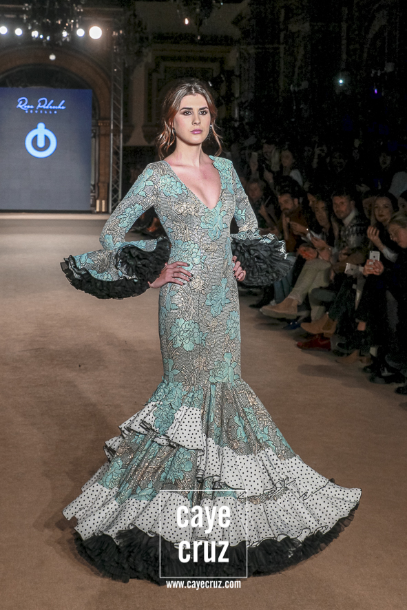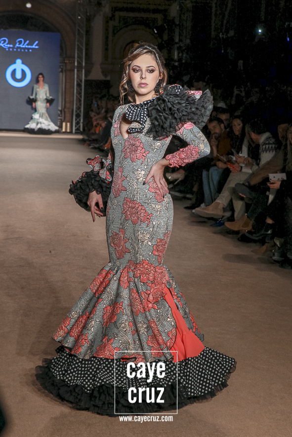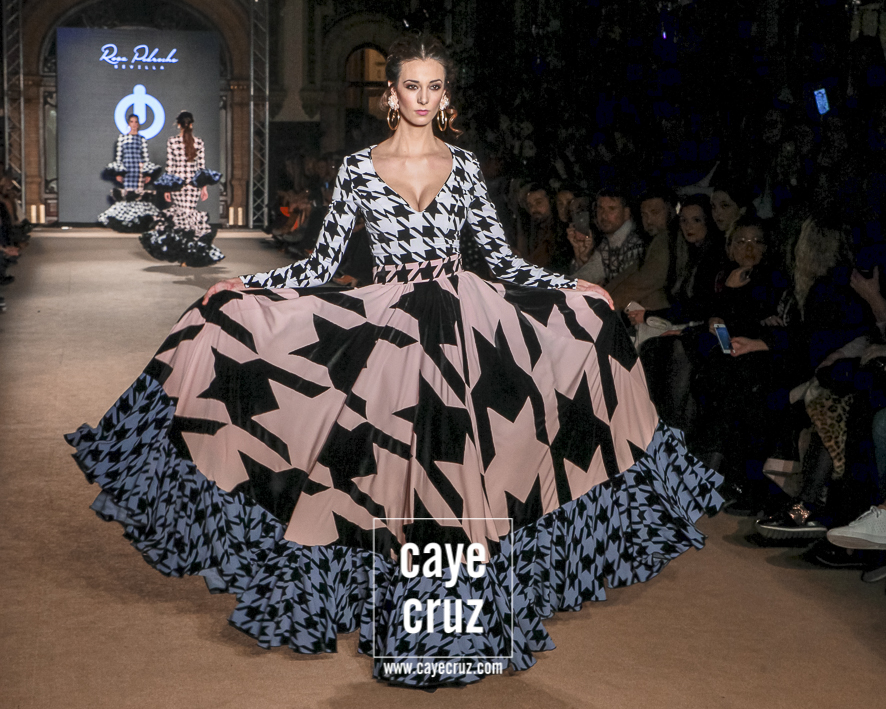 Música de producción actual, peinados o maquillaje pensados para esa pasarela que quiere ser a la vez un book fotogáfico, flamencas de estilo propio con una paleta de colores muy particular y un aire modernista. El ‘Modo On’ de Rosa Pedroche se activó esta temporada a partir de una propuesta que juega muy bien sus bazas y con la que la diseñadora consolida más un estilo que, al igual que en sus anteriores colecciones, se sirve más del diseño de tejidos o estampados que de las propias hechuras para personalizarse. Así es como se vistió: