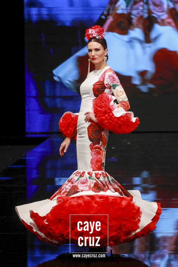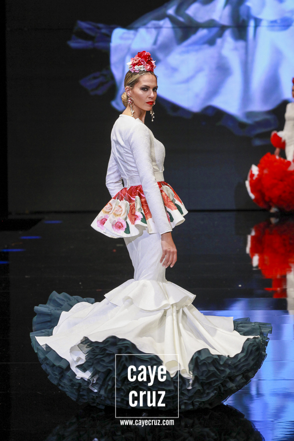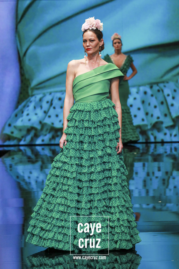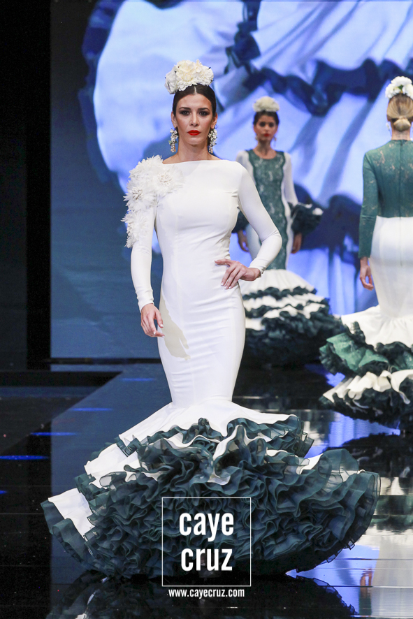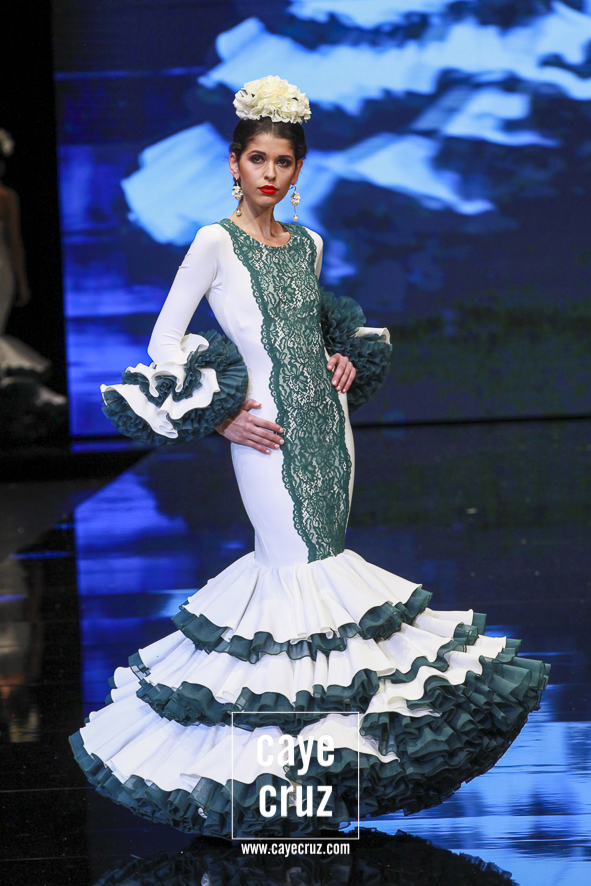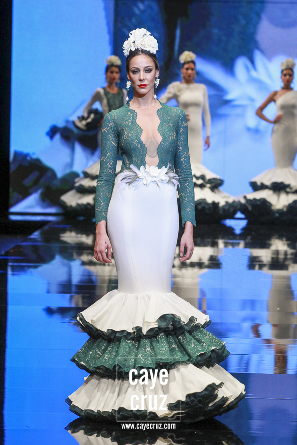 Los cuatro colores flamencos para cuatro visiones de la flamenca. Rojo, blanco y negro son los tres colores flamencos por excelencia, pero si hubiera que añadir uno más sería el verde, cuyo simbolismo no solo es por la connotación andaluza, también porque lo asociamos a detalles tan dispares como la solera, la esperanza o la flora. Así, estos cuatro colores se citan pero nunca se unen del todo en una colección que va tomando esa paleta clásica para ir buscando diseños más modernos y con bastantes ideas que no se alejan de las tendencias actuales.
