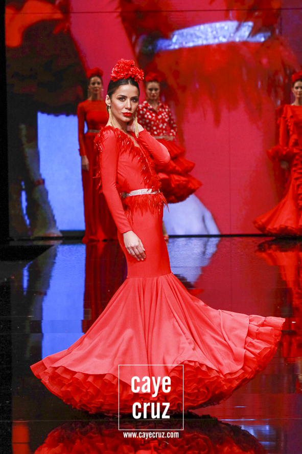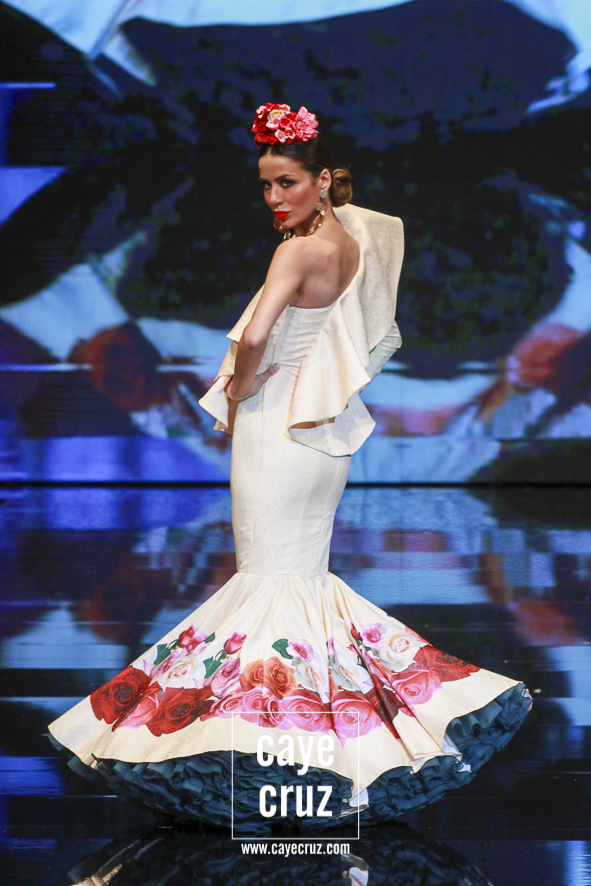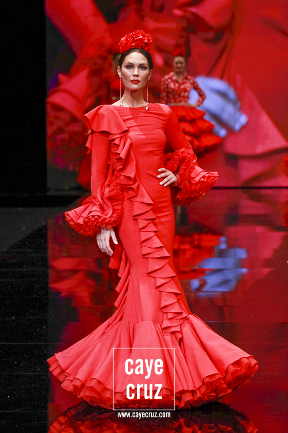 La confirmación de un camino a seguir. Desde hace dos temporadas, las colecciones de Carmen Raimundo comenzaron a mostrar una flamenca diferente, más actual y con ideas más personales, al mismo tiempo que aún dejaba espacio a los estilos más clásicos o a esas hechuras que se saben sobre seguras para esa clientela que prefiere no arriesgar. Maharana, una colección curiosamente dedicada a una Feria, se desprende por completo de ese clasicisimo y se entrega en todas las salidas a ese nuevo estilo que la diseñadora ha ido moldeando, con un trabajo de patronaje elaborado, grandes volantes, cuerpo entallados y muchos juegos de transparencias que alternan los tules con los encajes. Una nueva visión que ya se veía buscando su hueco pero que aquí, y de muy buena manera se alza como protagonista absoluta.