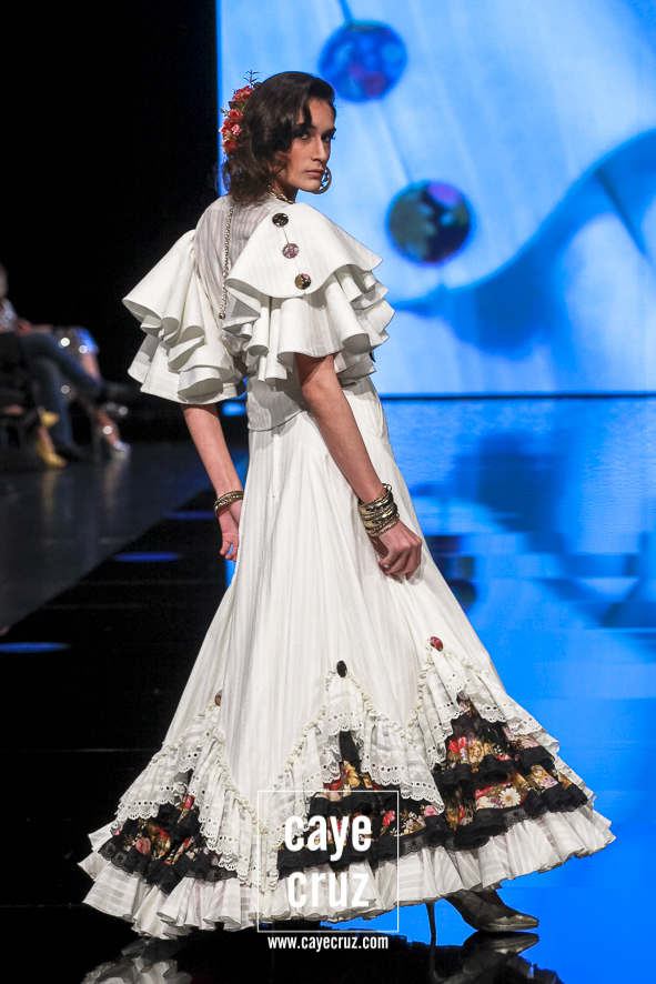 Ahora sí: Esto es Alonso Cozar. Cualquier diseñador que haya debutado como profesional en SIMOF o que haya desfilando en esta pasarela tras varios años haciéndolo en otras sabe perfectamente que la primera colección, casi siempre, es para vender y darse a conocer. Por tanto, el estilo personal o las ideas más propias se quedan en el tintero en favor de un concepto más genérico o fácil de digerir. A Alonso Cozar le pasó eso en 2018: su colección era correcta, acorde con su año y mostraba lo que podrían ser sus ideas sin salirse mucho del paso, pero faltaba algo y en Zingarella se ve: desde el primer diseño vemos que ahora sí, estamos ante lo que Cozar quiere subir a la pasarela y la colección, en su conjunto, gana en personalidad y nos permite conocer de verdad al almonteño. Lo que antes se intuía ahora es explícito.