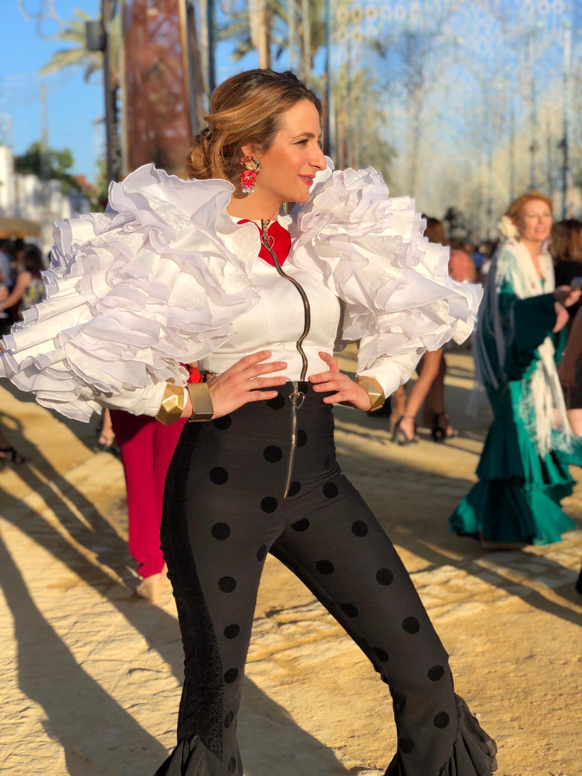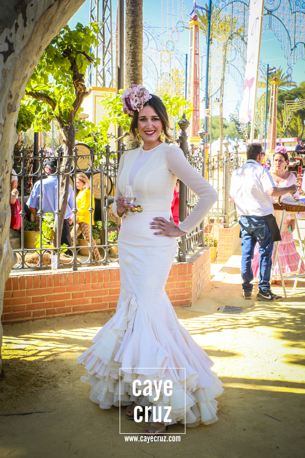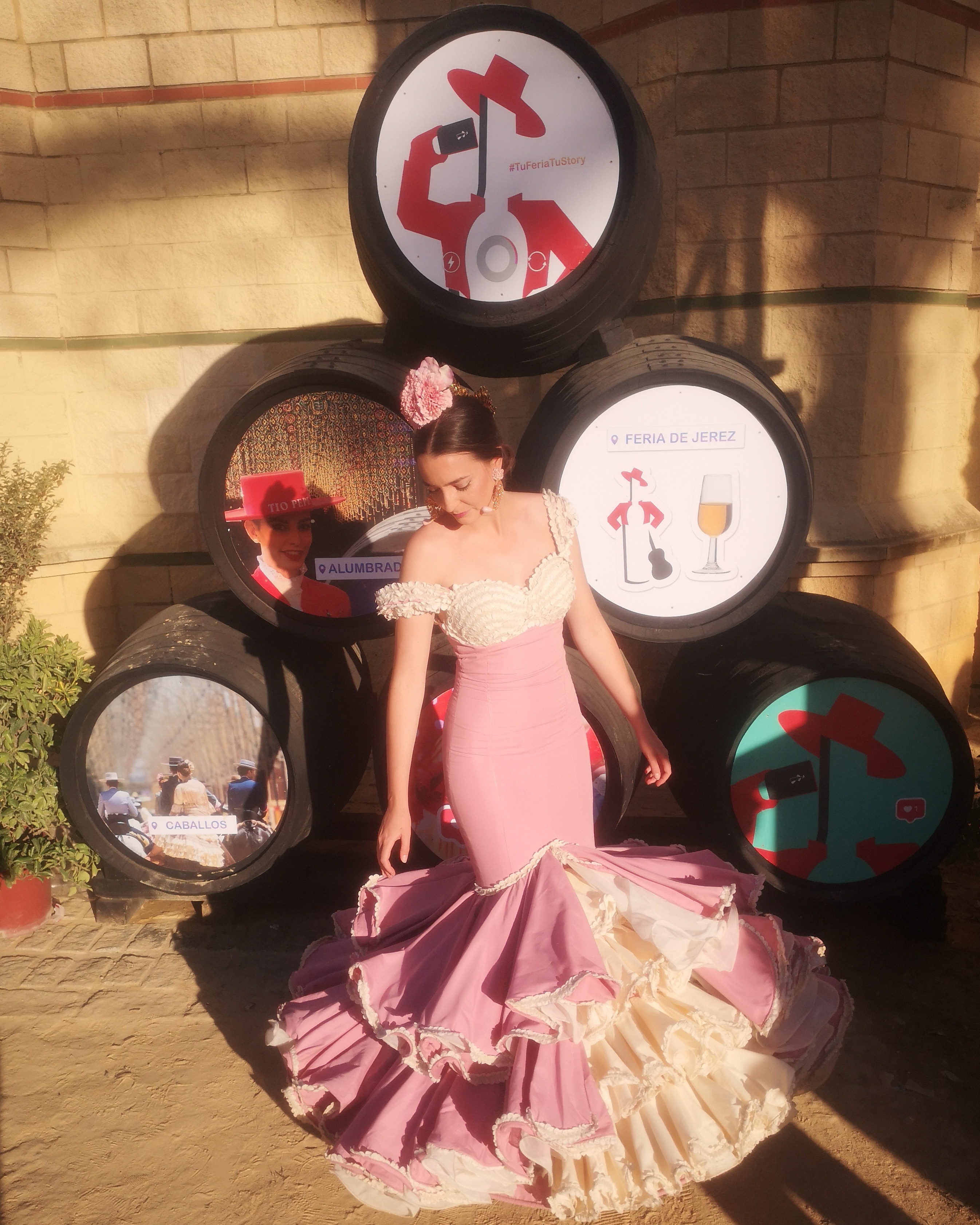Y como ejemplo hoy un traemos un ejemplo visual tanto de lo que nos encontramos como de lo que nos ha ido llegando a nuestro mail. Obviamente esta es de la primeras ferias en las que la ausencia de mangas convive casi a la par con los trajes generosos en llevar tejido de hombro en adelante. Es habitual, ya que esta celebración es de aquellas en las que nunca sabes si vas estar más cerca del verano que de la primavera y también porque la memoria de pez se impone muchas veces cuando se suceden las pasarelas en pleno invierno y al público o prensa se les olvida cuándo se desarrollan la gran mayoría de ferias (jamás entenderé ese ostracismo al que a veces se condenan los trajes de tirantas o sin mangas). Tampoco destaca la Feria de Jerez porque las flamencas renuncien a metros de tela en faldas, en vuelo o en cuerpos entallados pues casi todas las tendencias y todas las ideas que esperamos ver en una feria se dejan caer por el González Hontoria con un protagonismo notorio de las firmas locales y con un fondo en el que el Alumbrao, los coches de caballo y Tío Pepe se reparten el protagonismo a la hora de colaborar en las estampas propias de esta Feria que hoy os dejamos con una selección de los looks que más nos han gustado así como la galería completa de imágenes propias y recibidas en nuestro mail: