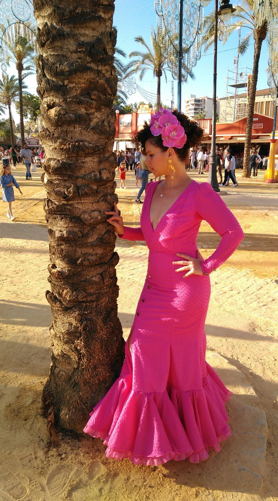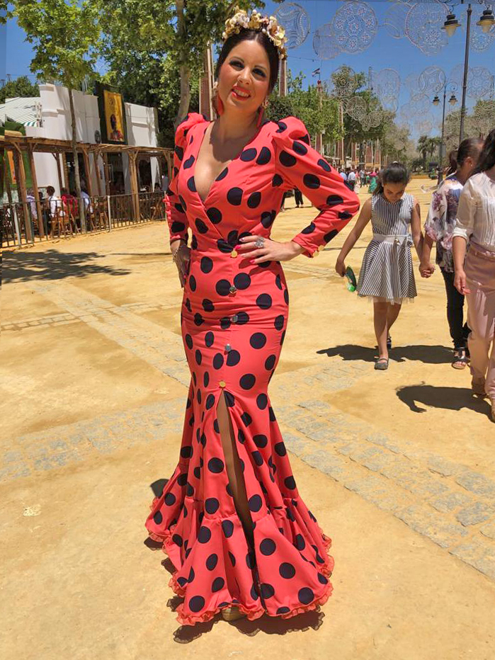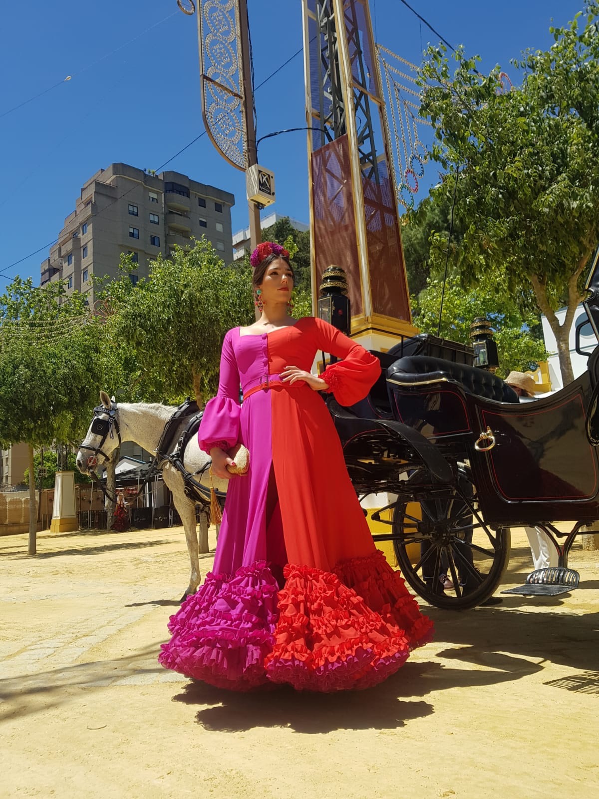 Y como ejemplo hoy un traemos un ejemplo visual tanto de lo que nos encontramos como de lo que nos ha ido llegando a nuestro mail. Obviamente esta es de la primeras ferias en las que la ausencia de mangas convive casi a la par con los trajes generosos en llevar tejido de hombro en adelante. Es habitual, ya que esta celebración es de aquellas en las que nunca sabes si vas estar más cerca del verano que de la primavera y también porque la memoria de pez se impone muchas veces cuando se suceden las pasarelas en pleno invierno y al público o prensa se les olvida cuándo se desarrollan la gran mayoría de ferias (jamás entenderé ese ostracismo al que a veces se condenan los trajes de tirantas o sin mangas). Tampoco destaca la Feria de Jerez porque las flamencas renuncien a metros de tela en faldas, en vuelo o en cuerpos entallados pues casi todas las tendencias y todas las ideas que esperamos ver en una feria se dejan caer por el González Hontoria con un protagonismo notorio de las firmas locales y con un fondo en el que el Alumbrao, los coches de caballo y Tío Pepe se reparten el protagonismo a la hora de colaborar en las estampas propias de esta Feria que hoy os dejamos con una selección de los looks que más nos han gustado así como la galería completa de imágenes propias y recibidas en nuestro mail:
