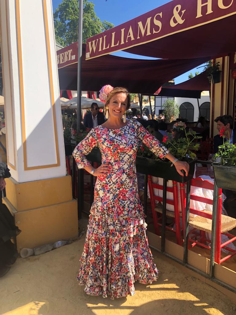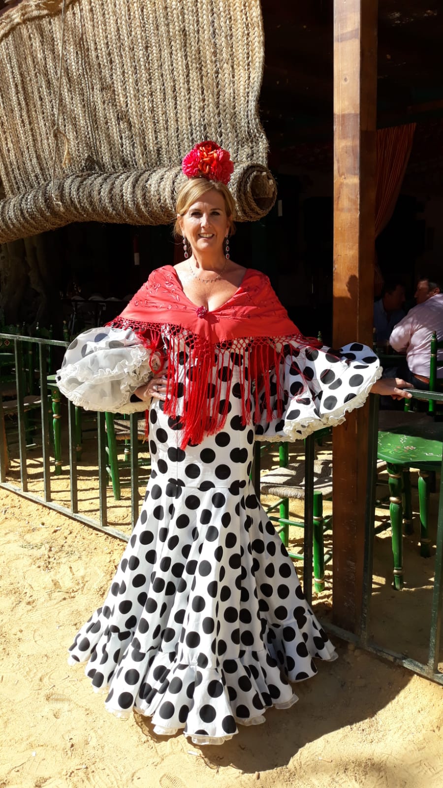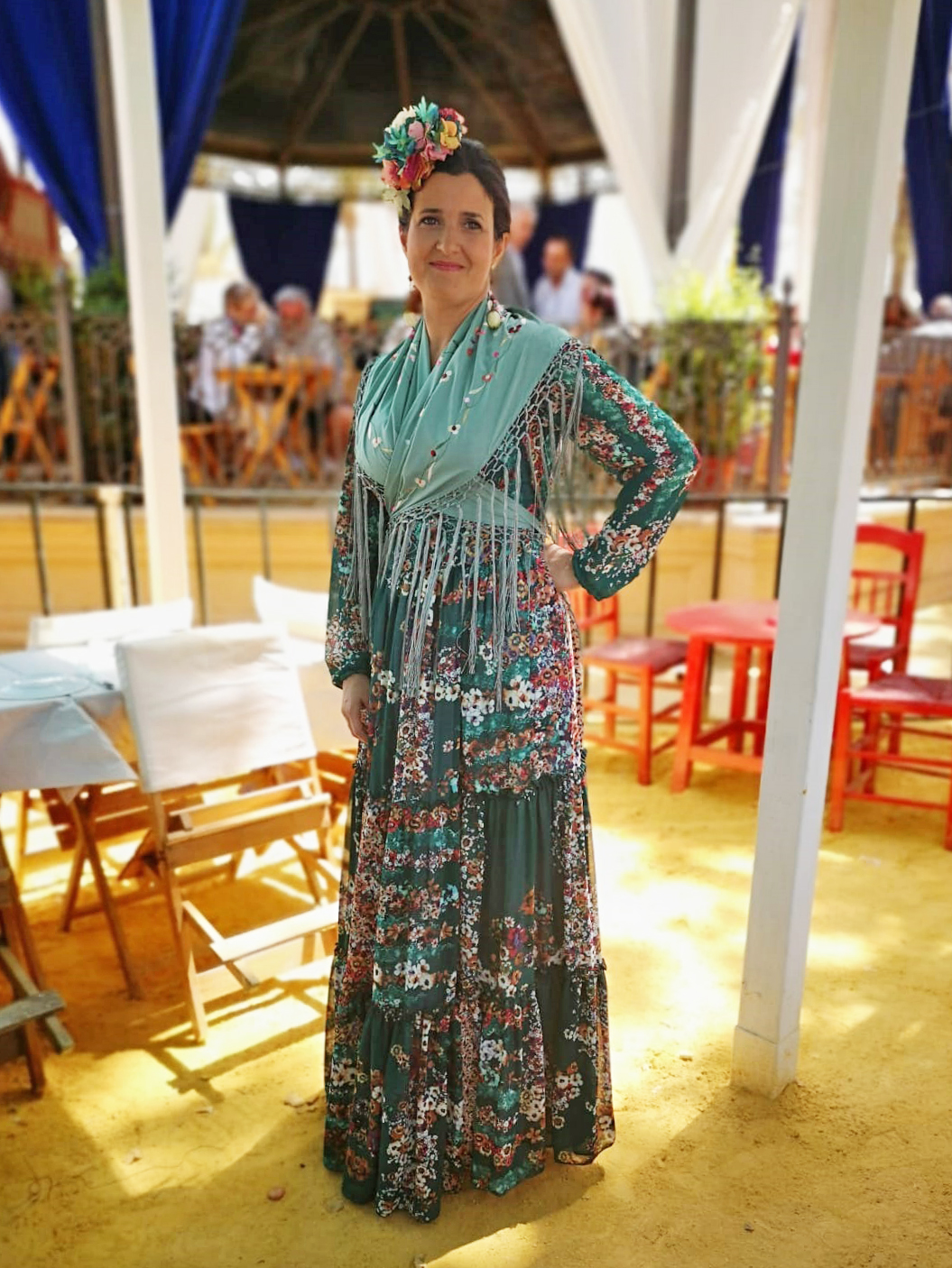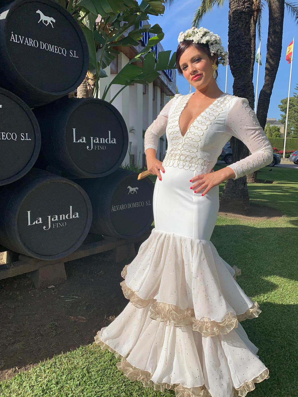 Ana Belén Morillo (directora de la Pasarela Flamenca de Jerez) con traje de Amparo Macía
