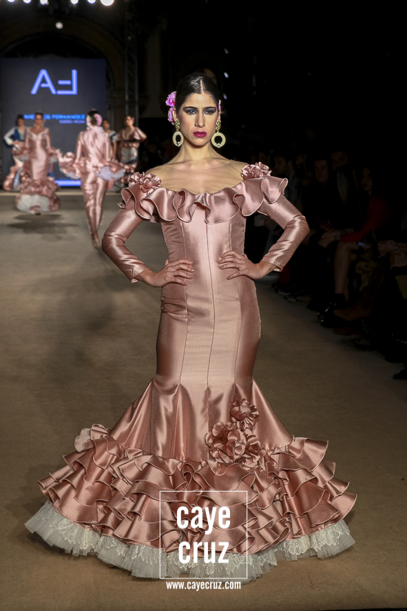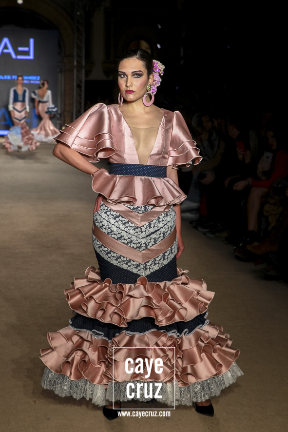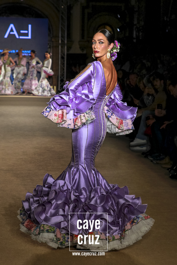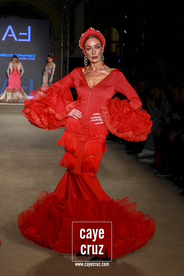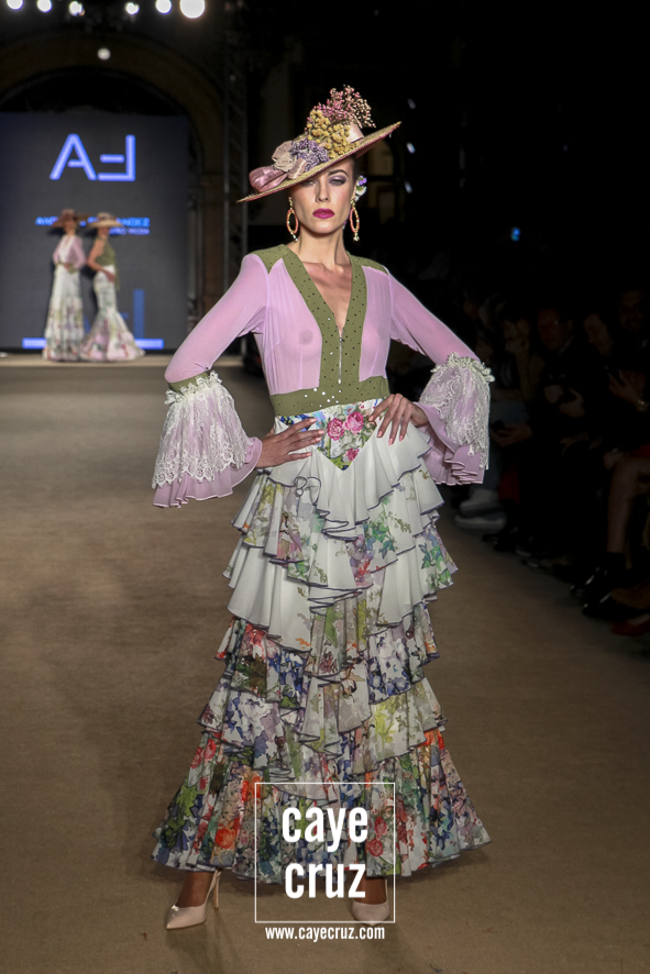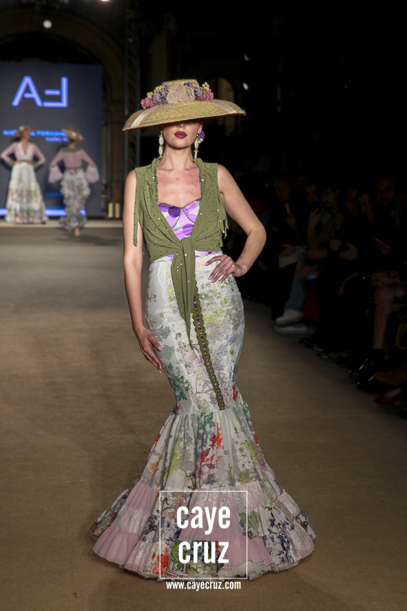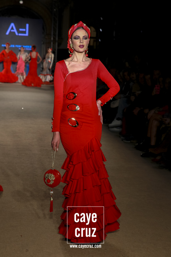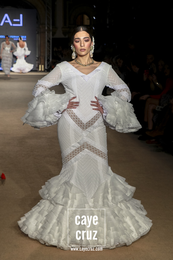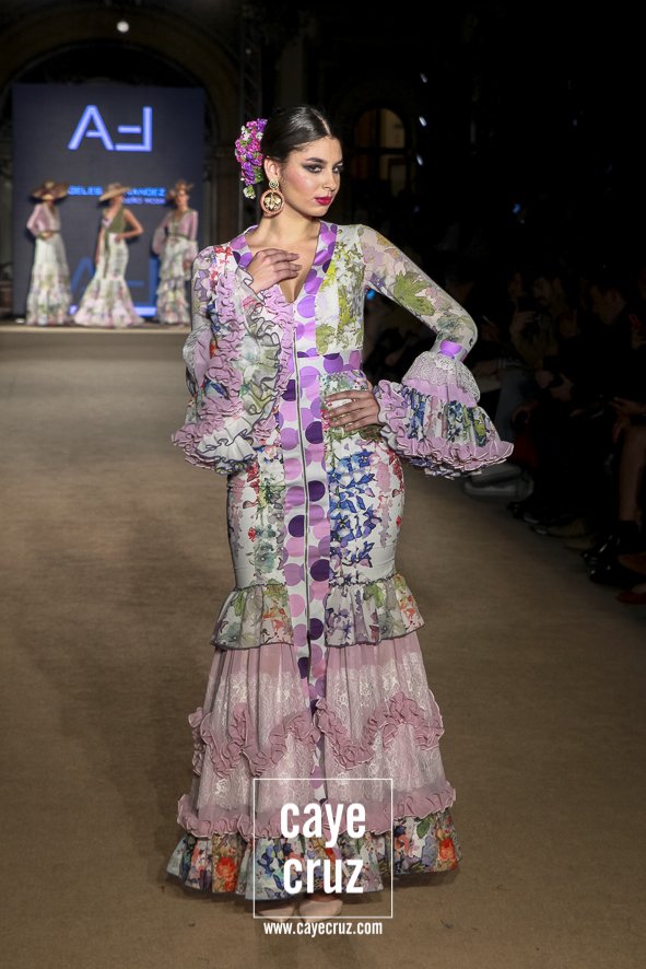 La búsqueda del diseño como una constante en casi todos los trajes. Hace dos años decíamos que lo mejor de Ángeles Fernández está por llegar y de momento seguimos viendo a una diseñadora inquieta que, sin ser rupturista con la forma del traje de flamenca, sí juega con el patronaje, con el boceto sobre cuerpo y con las miles de opciones que da el cortar y transformar. Todo ello buscando la personalización de una manera particular que deja pocas opciones para las que busquen algo básico. Y como matiz casi único, presten atención a algunos de los volantes en falda: prácticamente las faldas de la flamenca de Fernández ya van con sello propio.