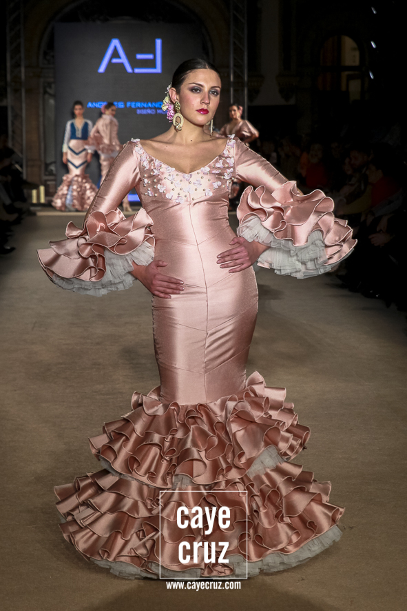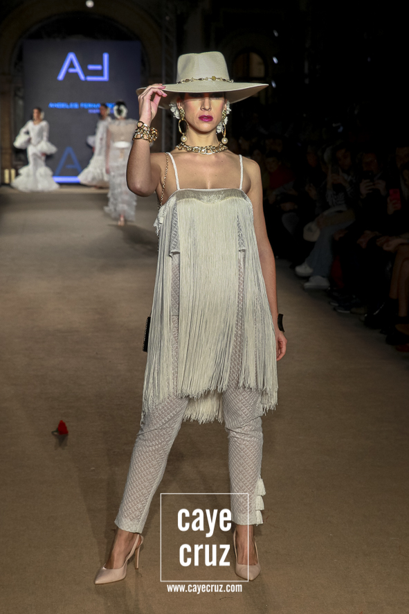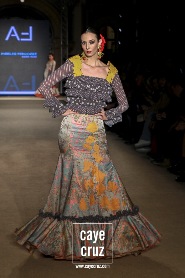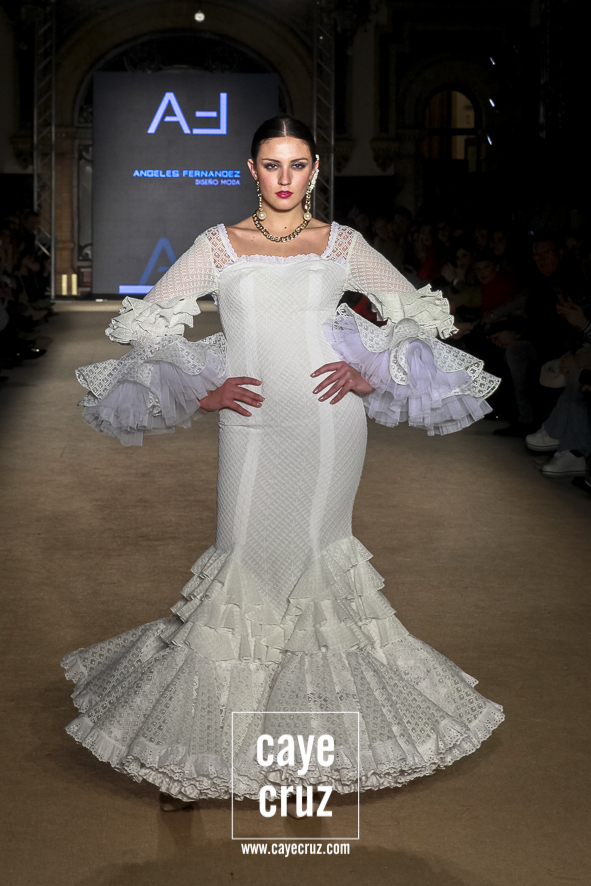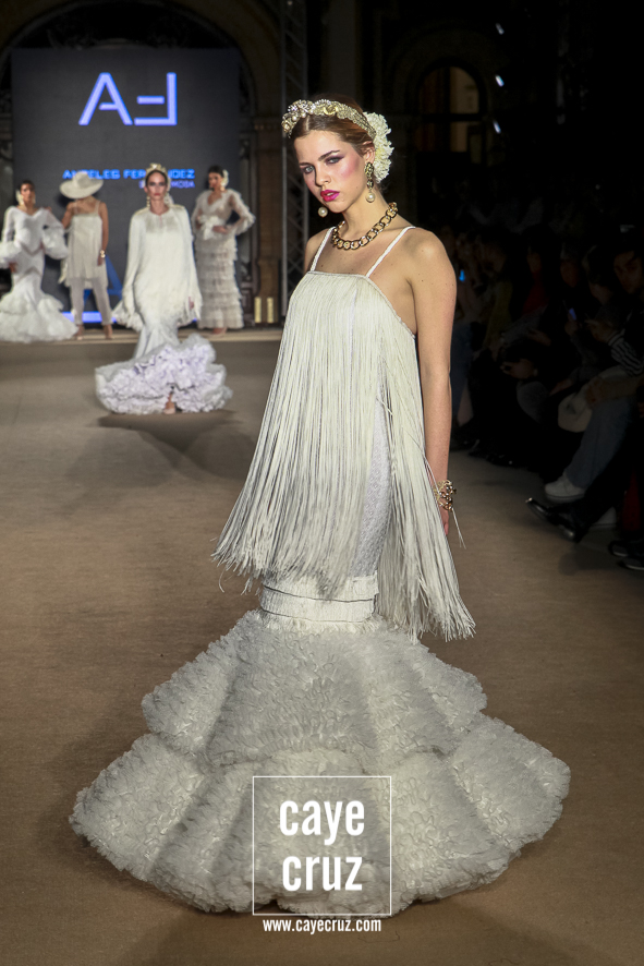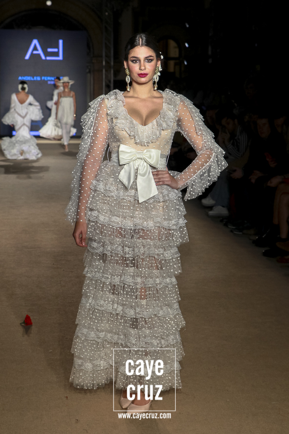 Una temporada de moda flamenca se divide tradicionalmente entre lo clásico y lo creativo. Siempre ha sido así, pero desde hace años, hay un tercer grupo de diseñadores o firmas que se mantienen en un punto medio entre ambas: son los que no pierden las raíces del género pero quieren formar sus propias ideas o personalidad en la flamenca buscando la creatividad pero sin dar demasiadas concesiones. Algunos se guían por la tendencia y otros no, pero lo que caracteriza a este grupo es que nos dan esos desfiles que siempre te gusta ver porque son muy agradecidos en la forma, siempre te dejan algunos puntos a destacar y mantienen a la firma en una posición relativamente cómoda donde la expectativa o la competencia se la hacen ellos a sí mismos. Y todo esto que acabamos de decir lo vemos siempre cuando va a comenzar un desfile como el de Ángeles Fernández que este año ha querido ser Auténtica(mente) ella:
