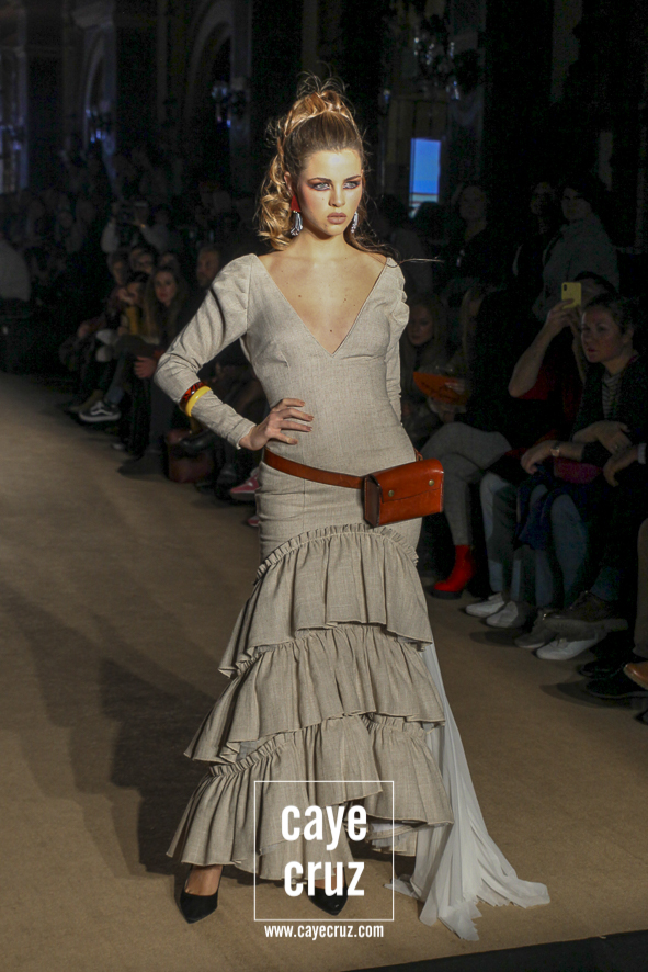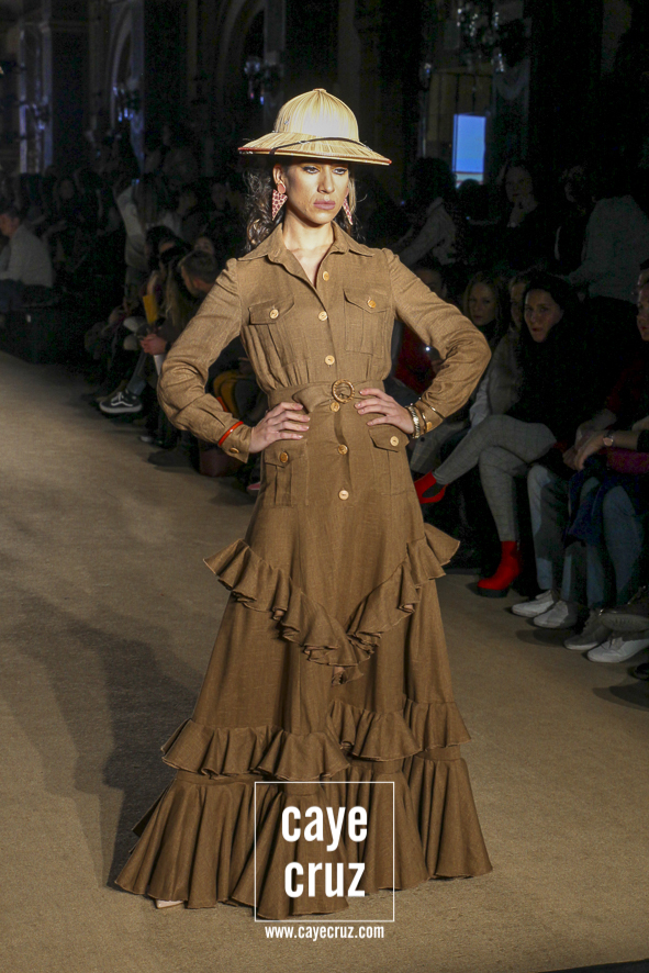 El caso de Manuela Martínez podría considerarse una de las sorpresas de 2019, pero no ha sido así: su colección de 2018 dejó entrever que esta firma tenía algo y tenía muchas opciones de pisar fuerte si se pulían ciertos detalles (además de crear uno de los trajes más copiados de la pasada campaña). Su flamenca y su posible personalidad estaban ahí, pero tenía que echarse andar. El acertado cambio de Viva a We Love Flamenco hizo que, desde luego, los focos hicieran brillar a ‘Safari‘ como debía. Y así fue: