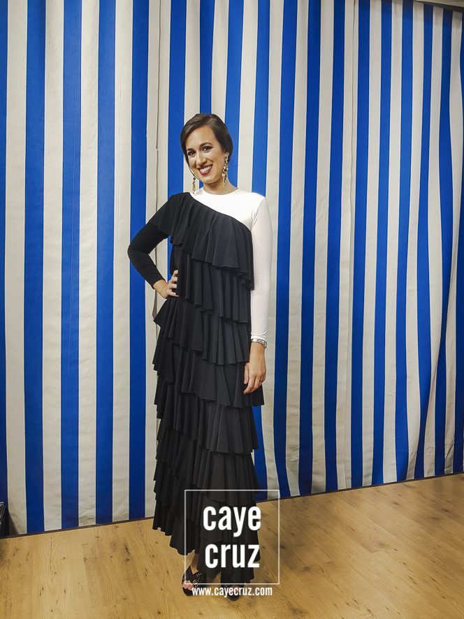 Twins Eme Dos. Sus intervenciones también son escasas pero contundentes. Marta y María ya cuentan casi como una firma fija para las flamencas lebrijanas que se dejan llevar por el binomio de blanco y negro que las hermanas llevan empleando desde sus inicios. Su futuro no es la flamenca, obviamente, pero raro es el traje de flamenca con su firma que no acaba siendo carne de pantallazo.