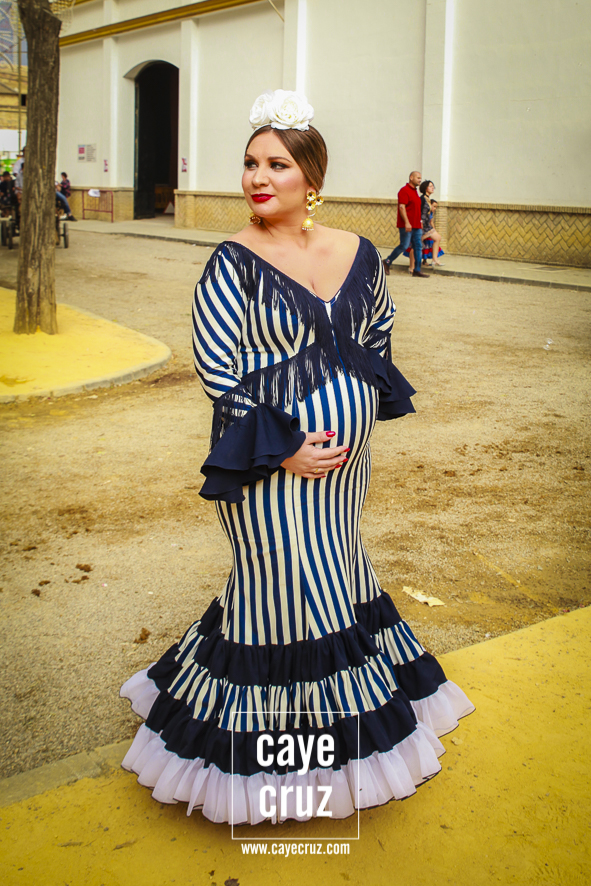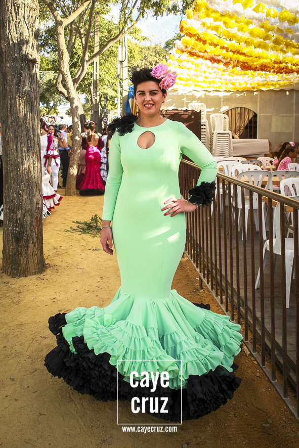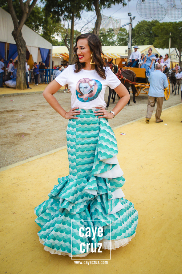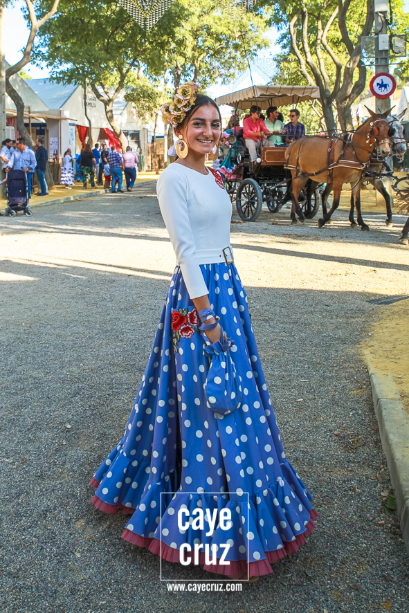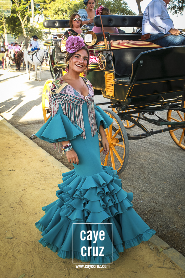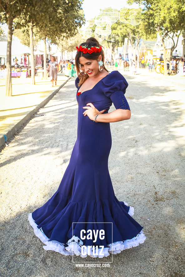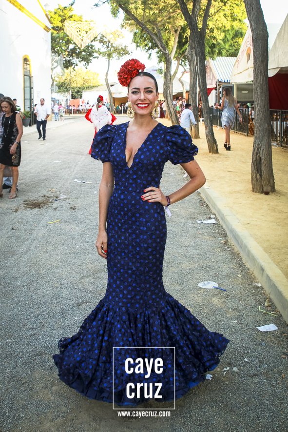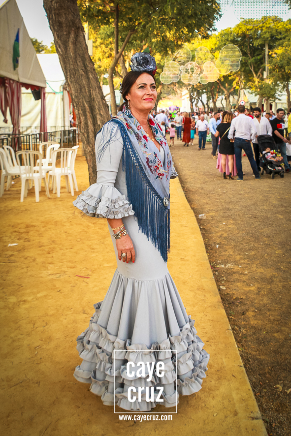 Protagonismo del celeste. En cualquiera de sus tonalidades o en todas directamente: muchas flamencas se han dejado llevar por el celeste en sus volantes, ya sea haciendo de su traje un color block o combinándolo con otros colores, pero siempre dejando al celeste el protagonismo. A ello ayuda que ya apenas se le ve como el color bebé que hace años se consideraba…