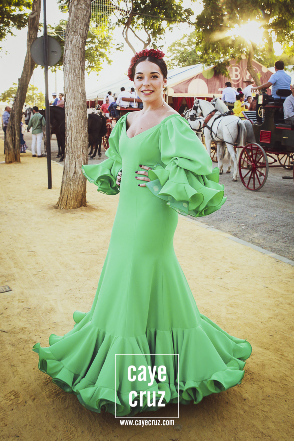 Mangas. De todos los patrones que forman un traje, los que más trabajo han dado este año a los talleres han sido las mangas: con volumen y de tul, de farol, con detalles o aplicaciones en los hombros, húngaras o clásicas. Sea el estilo que sea, esta Feria ha sido la de fijarse especialmente en cómo las flamencas lebrijanas le han dado un aire diferente a sus brazos y mangas.