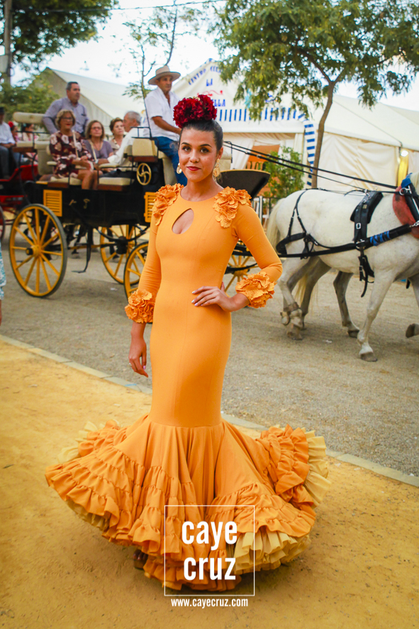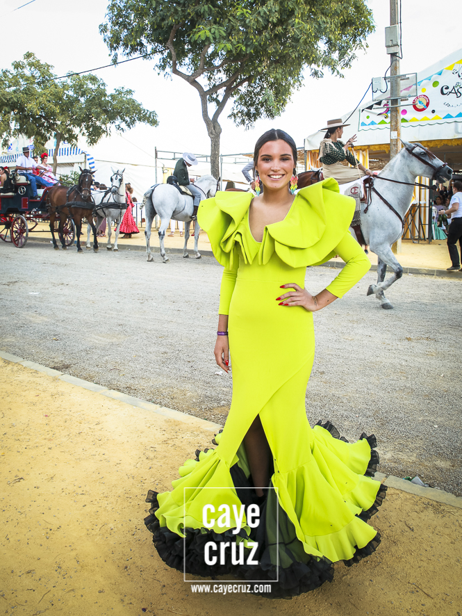 Ernesto Sillero. Todos los colores de Bamboleo se pasearon por el Real. Desde los que tenemos sobre estas líneas hasta el amarillo albero que protagonizaba la parte final de la colección. Sillero no viste quizá a tantas flamencas lebrijanas como pudiese parecer pero si es verdad que, las pocas que hay, se notan de lejos.