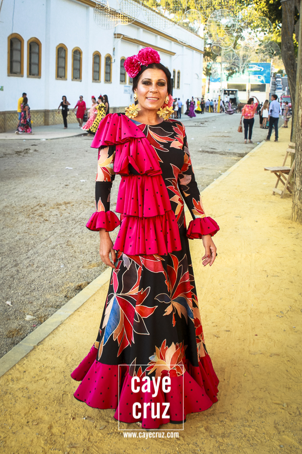 Carmen Jarén. Su clientela también es de las que prefiere estrenar en el Rocío y reaprovecharlo en el Real y eso se nota: Carmen ya solo trabaja a medida para una clientela que le ha seguido desde siempre y que ahora, más de 15 años después, prefiere la comodidad de la flamenca clásica.