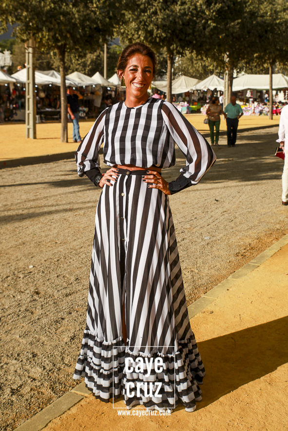 En el caso de Cristina Rusiñol, reportera de Lebrija TV que nos mostró ambiente de buena parte de las casetas en los directos, se optó por un estilo más clásico pero muy colorido con trajes como el de Luquita Moda (izquierda), los lunares flamencos de Rocío Martín (centro) o los estampados florales de Belúlah (derecha). Además llevó uno de los días un traje realizado por su propia madre (galería).
