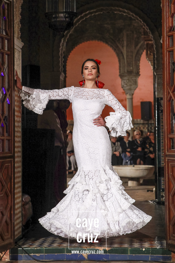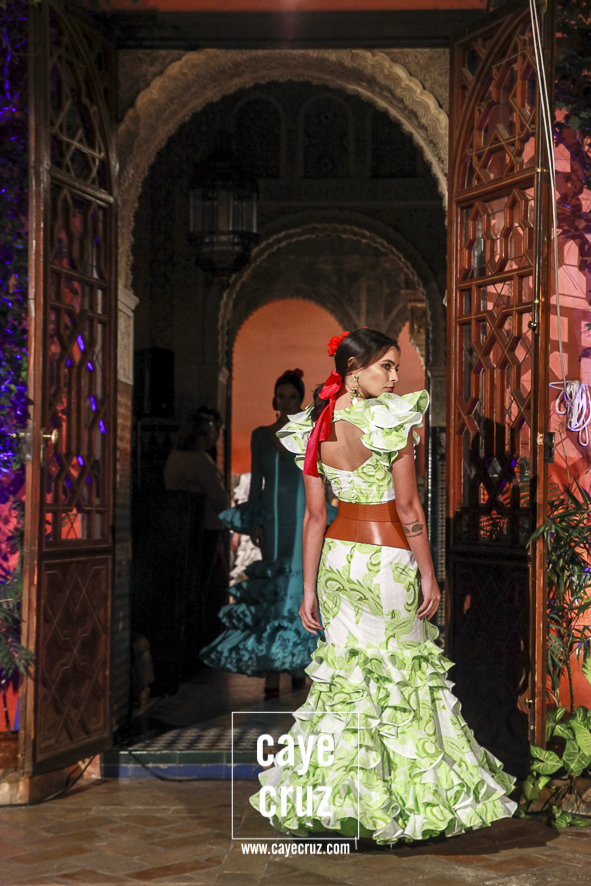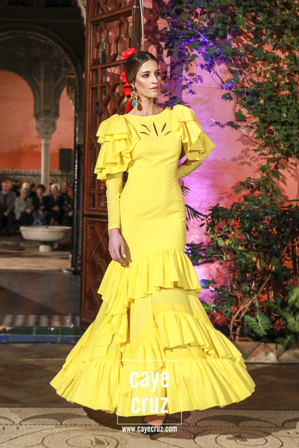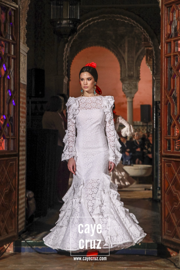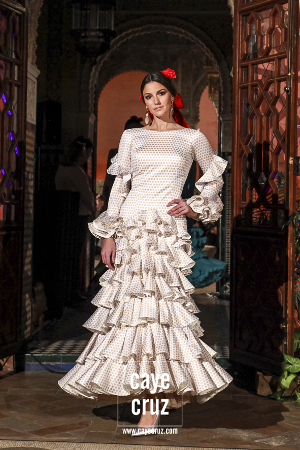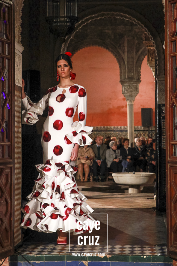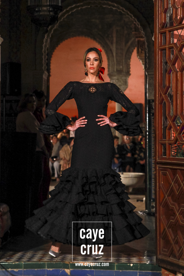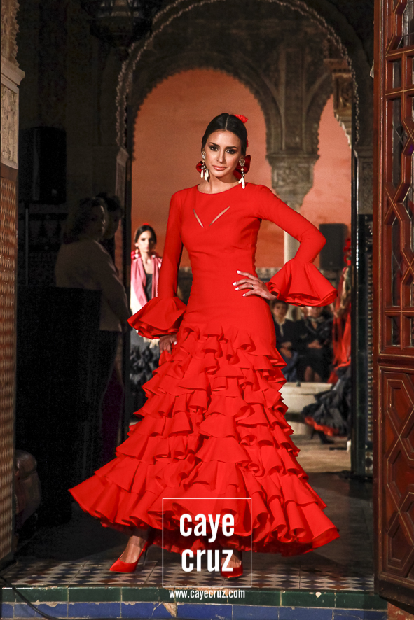 Volantes que miran hacia el futuro. A pesar de la estética clásica y genuinamente flamenca que envuelve a toda la propuesta, la realidad es que la mayoría de los trajes hacen una combinación en su estructura entre ideas clásicas con patrones que hacen suya la creatividad más actual. Es la inquietud y el saber renovarse, el recordar aquello que nos enamoró e integrarlo en un discurso donde, de manera más concreta, destacaríamos el trabajo de los escotes o de la parte (que podríamos denominar) de Camino como las que renuevan la filosofía de Lina.
