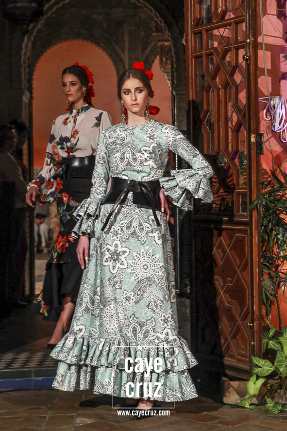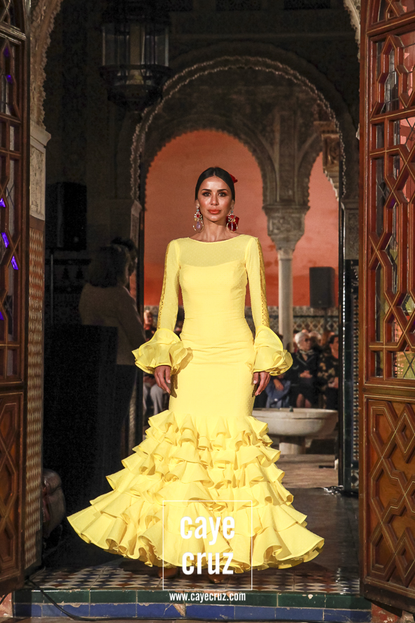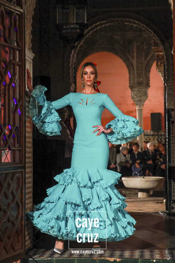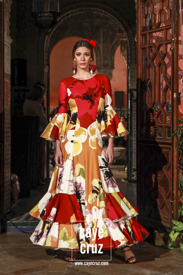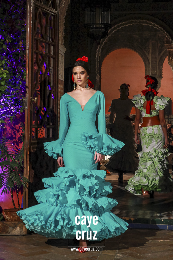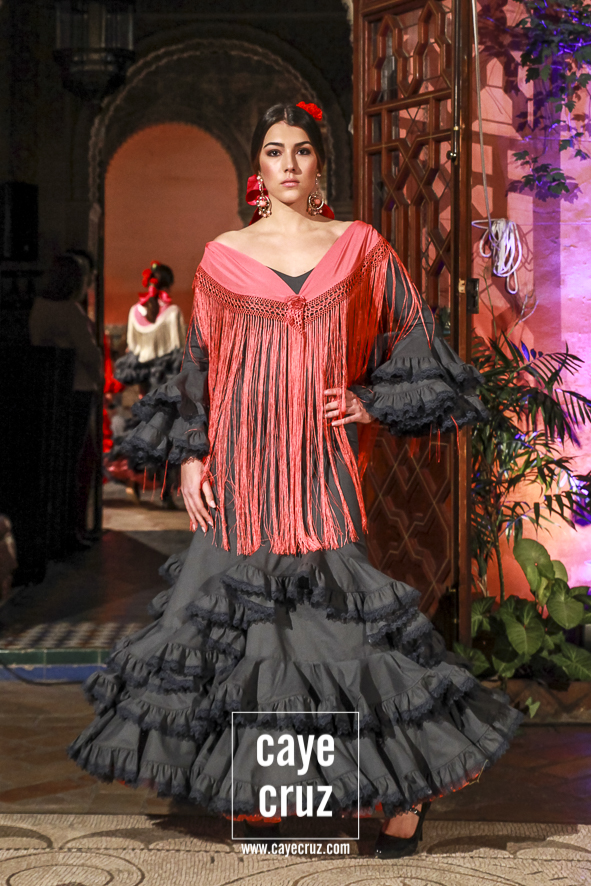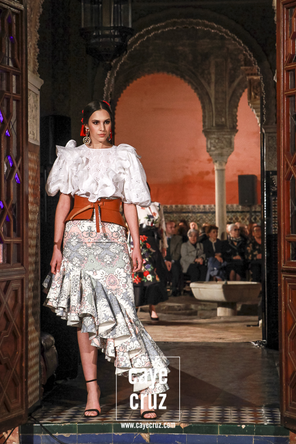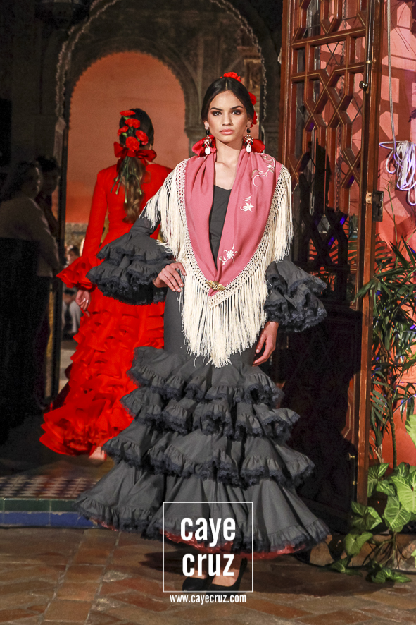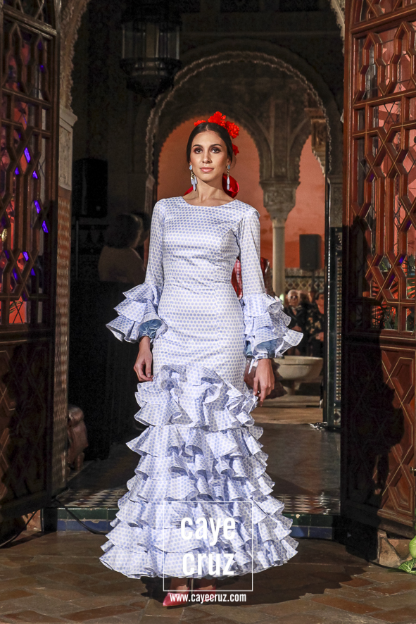 Volantes que miran hacia el futuro. A pesar de la estética clásica y genuinamente flamenca que envuelve a toda la propuesta, la realidad es que la mayoría de los trajes hacen una combinación en su estructura entre ideas clásicas con patrones que hacen suya la creatividad más actual. Es la inquietud y el saber renovarse, el recordar aquello que nos enamoró e integrarlo en un discurso donde, de manera más concreta, destacaríamos el trabajo de los escotes o de la parte (que podríamos denominar) de Camino como las que renuevan la filosofía de Lina.