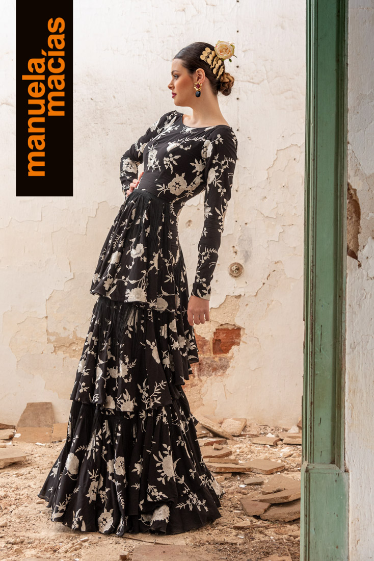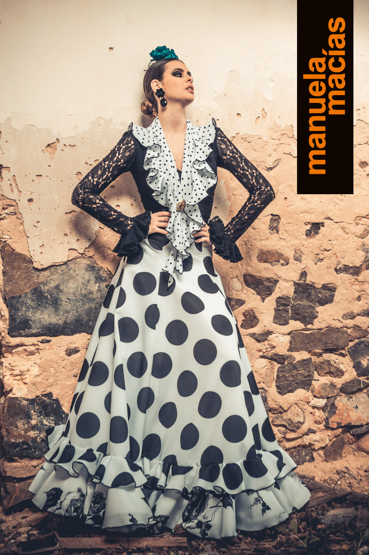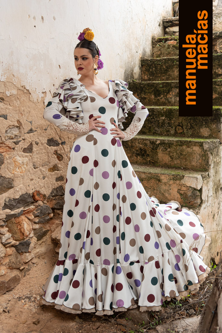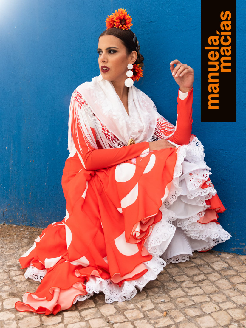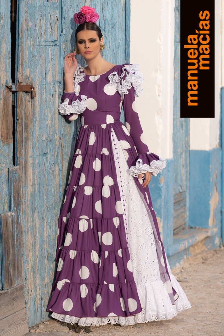 Largo tobillero. Dejando a la vista los zapatos pero sin llegar a la tendencia del largo midi. Si a eso le añades el diseño de una bata blanca perforada con sus pasacintas tienes uno de esos fondos de armario flamenco que saben hacerse con el matiz atemporal pero que también se integra en el momento actual ya que el subir los largos es una de las ideas que visten a la flamenca del 2020. Una apuesta personal de Manuela Macías que apunta directa al Camino.