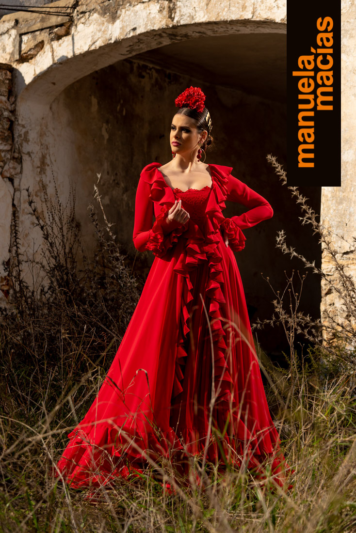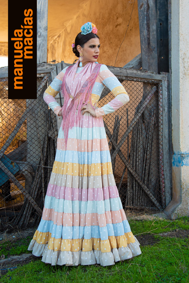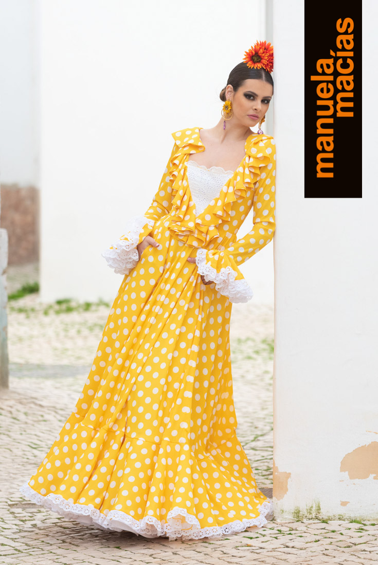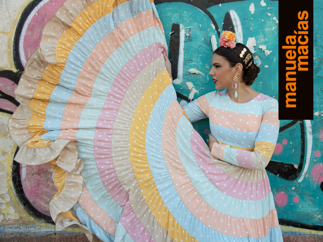 Su flamenca se viste siempre de lunares y de pequeños detalles. De ese estilo clásico hecho para romería en el que la flamencura la pone el vuelo de una falda, el coqueteo de unos volantes, la feminidad de un escote o ese mantoncillo cruzado al cuello. La firma Manuela Macías ha presentado un año más su propuesta para el 2020 con todos los ingredientes que se espera de esta casa onubense: unas propuestas que inspiran y miran directamente a nuestra primavera, a nuestras tradiciones y las visten de gala con un colorido y un mover los volantes que encierra algunos detalles que marcan su identidad para la presente temporada.