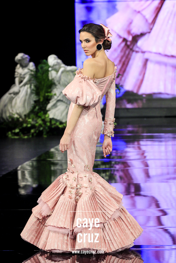 Homenaje a la Costura. Vaya por delante que la alta costura en moda flamenca NO existe porque ningún diseñador del sector de los volantes tiene su atelier en París o no cumple el resto de requisitos considerados como tal. Si hay quienes pueden acercarse porque su trabajo a nivel técnico es de una gran excelencia. Y todo lo que sale del taller de Fernández así lo cumple. No hace falta saber mucho de agujas o dedales para darse cuenta. La armonía de un patrón en su sitio, de una manga perfectamente colocada, de un escote encajado, de un cuerpo sin arrugas o de unos acabados limpios se ven a simple vista y en ‘Preludio’ cuesta trabajo encontrar algo que no cumpla esos caracteres.