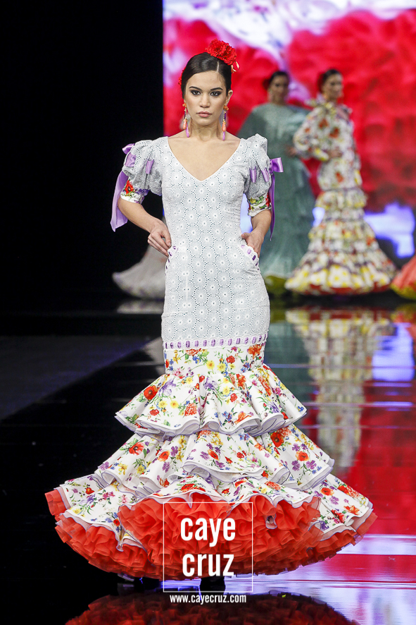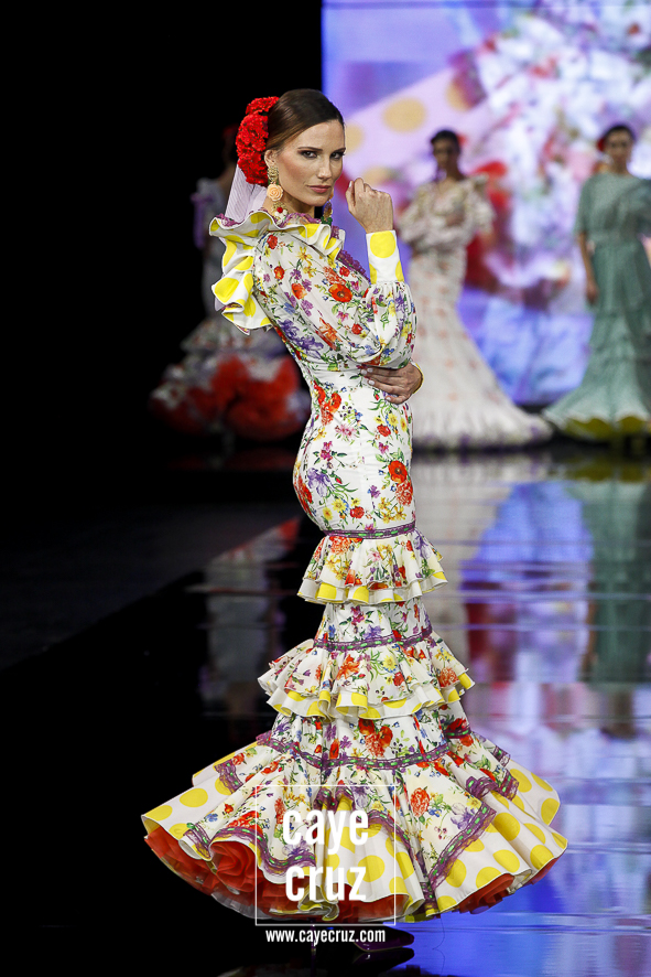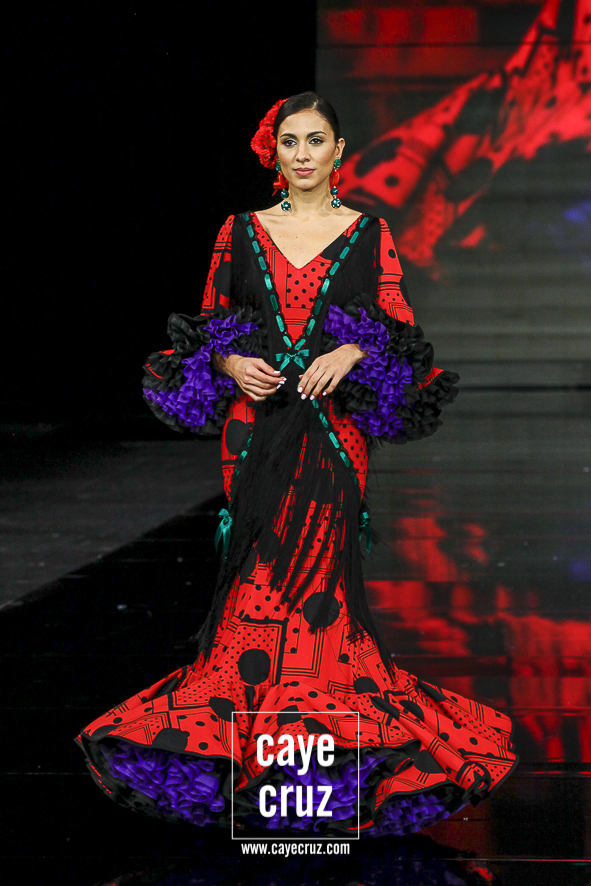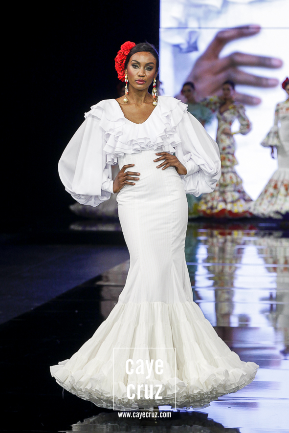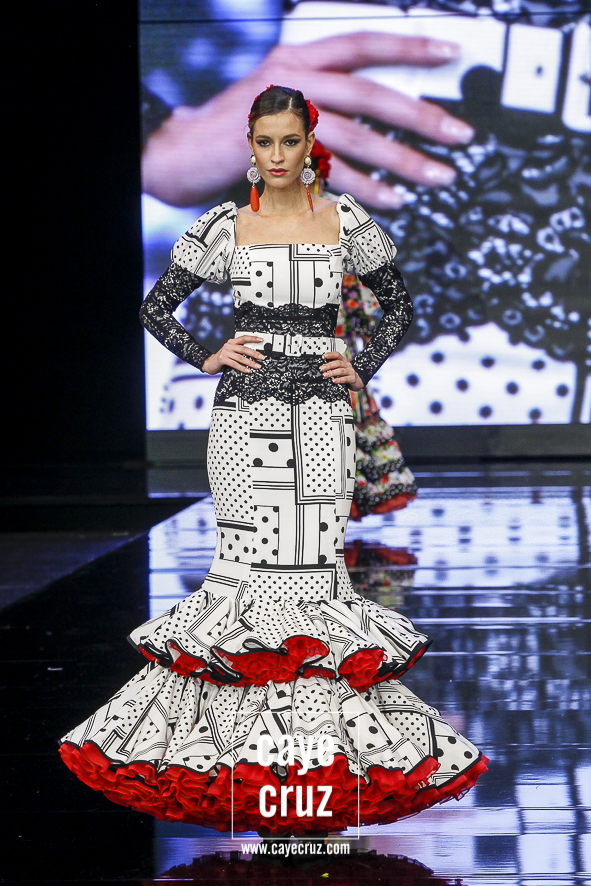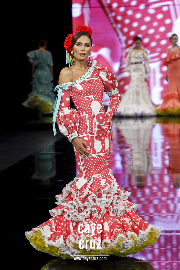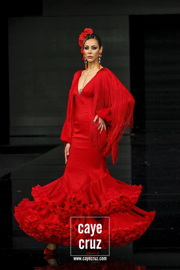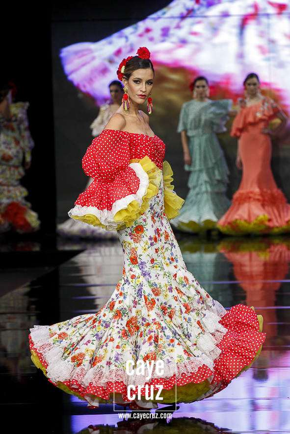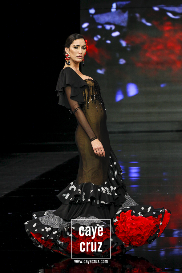 Lo clásico también es diferente. Ya sea en la primera parte de la colección, donde predomina el colorido claro, o en la segunda donde rojos y negros ganan en peso, ‘I’m’ se basa en diseños que son muy flamencos y muy clásicos, pero con ideas suficientes para verse como diferentes o renovadas. Es decir, ha habido trabajo, ha habido intención de meter alguna manga, corte o escote diferente pero que mantenga una línea donde la flamencura siempre es lo que prima.