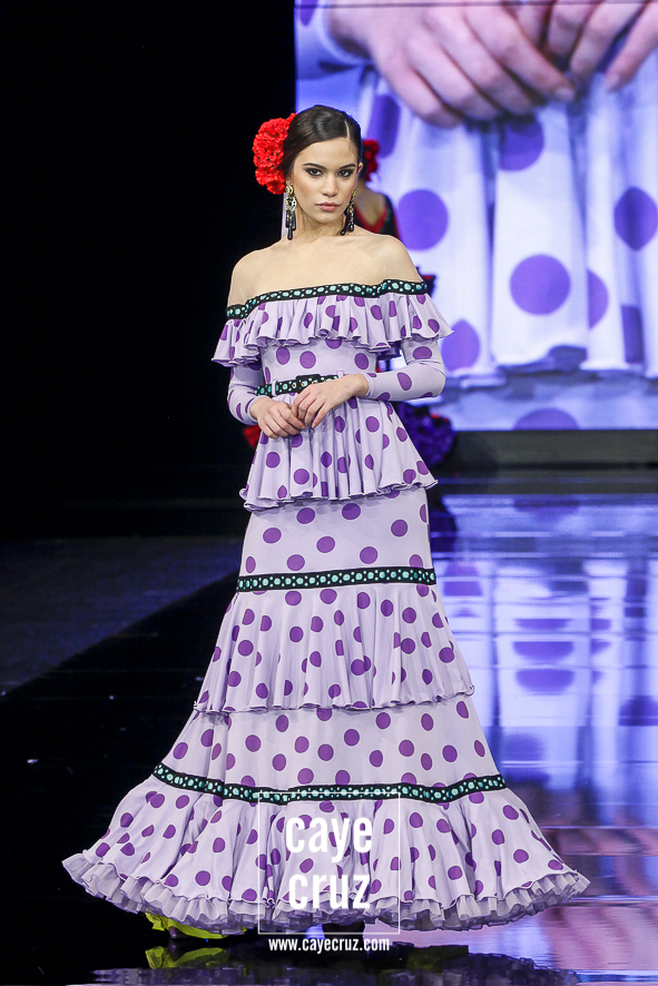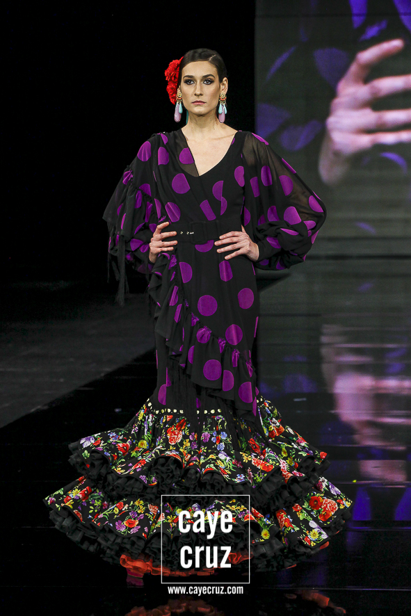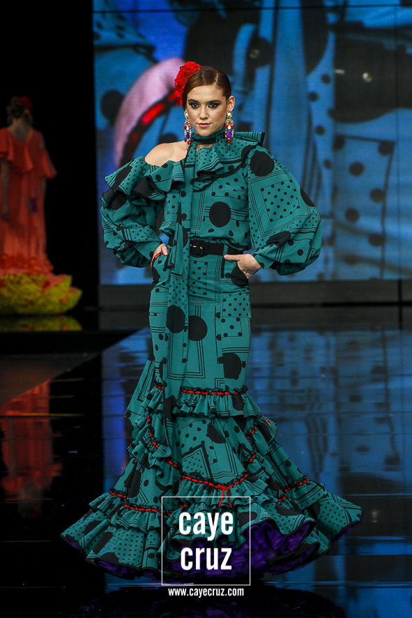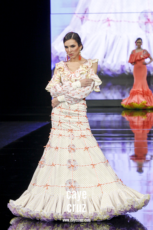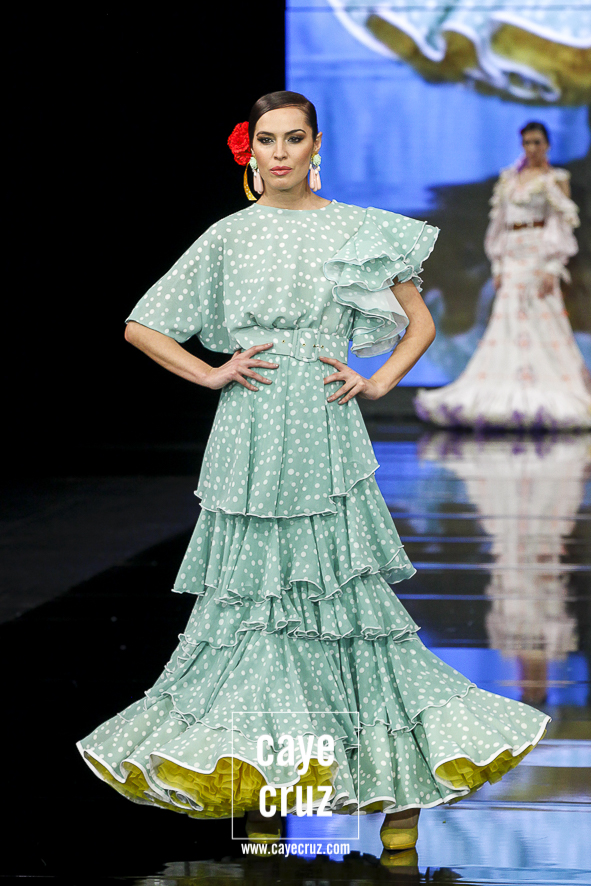 Ahora sí, el alma habló. Cuando hicimos el post de su colección de 2018, señalábamos que en él se veía una buena colección en la que sí se intuía cuál era el verdadero estilo Galváñ. Aparecía de manera secundaria, reclamando quizá su sitio, un espacio que ‘I’m’ le da: las combinaciones de color muy contrastadas, las tonalidades vivas, la presencia del negro, los lunares con personalidad, los pasacintas, los lazos y los tejidos vaporosos combinados con popelines es todo lo que hace falta para formar una flamenca muy genuina y que se crece en pasarela.